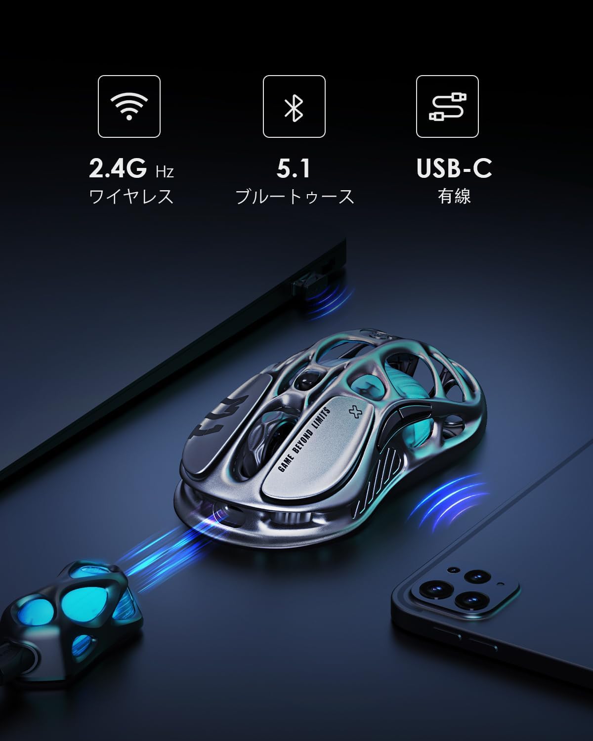 無線 有線 ワイヤレス 軽量 4K PAW3395センサー 26000DPI 4Kポーリングレート