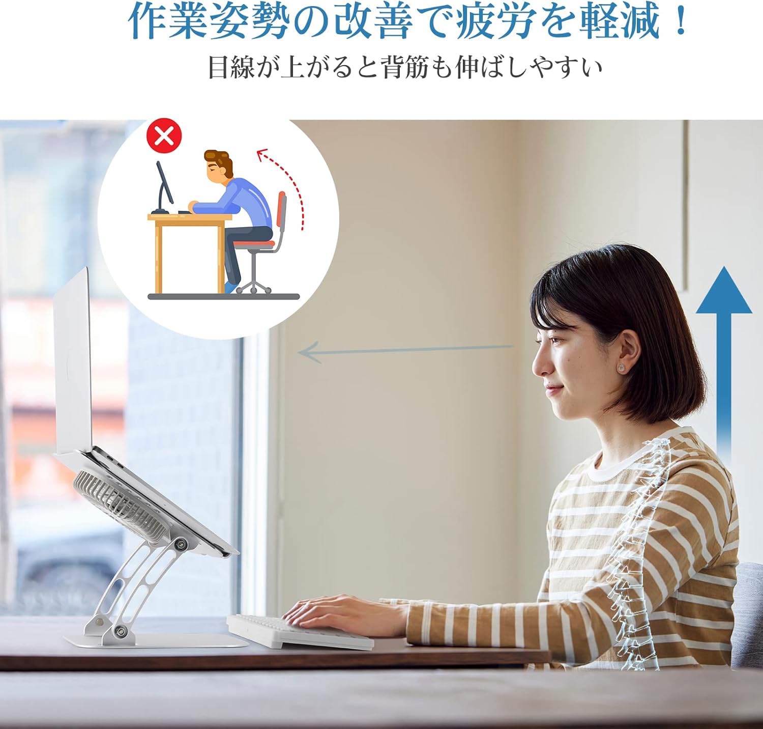 SHUWEI 大風量冷却ファン搭載 折りたたみ式 角度・高さを無段階調整 高強度アルミ合金