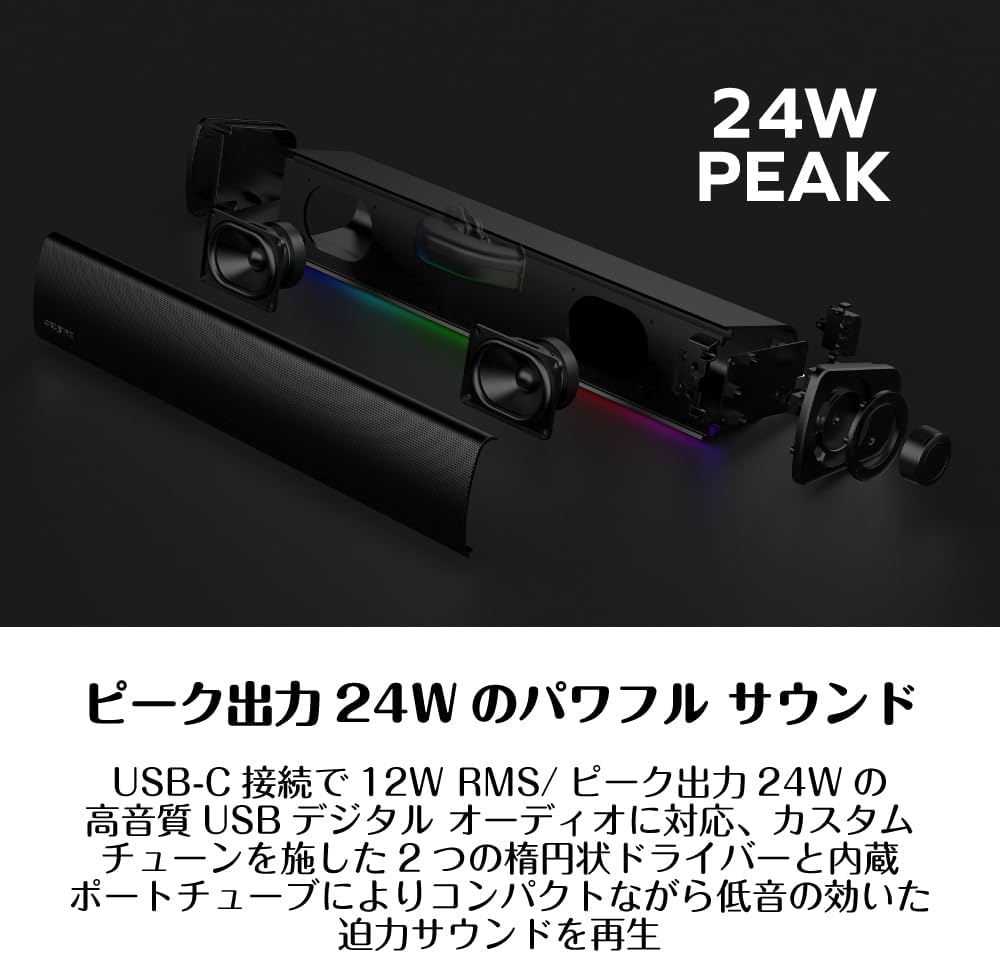 12W RMS/ピーク出力24W サイズを超えたワイドな音の広がり