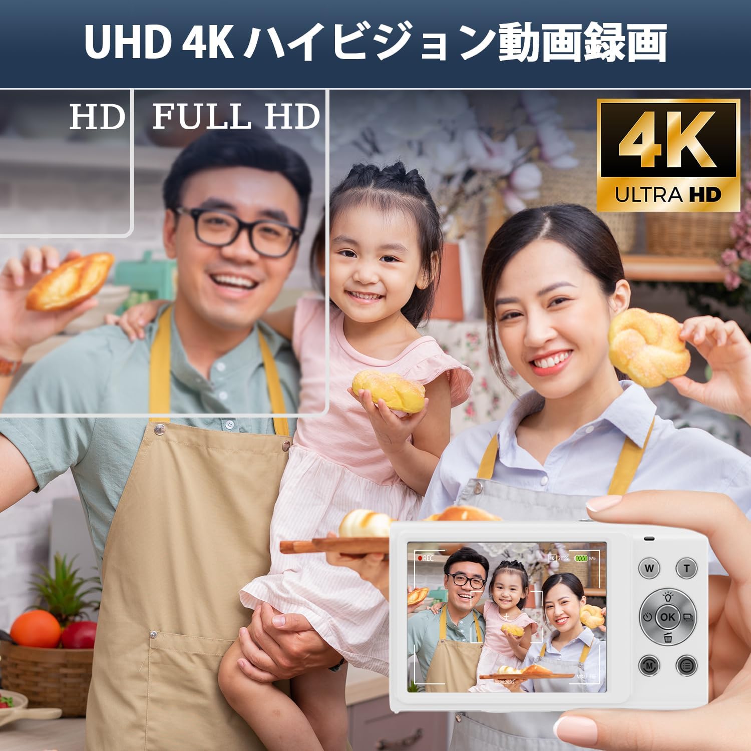 4K オートフォーカス デジカメ 4800万画素 マイクロSDカード付き 700mAhバッテリー2個搭載 16倍ズーム ウェブカメラ 手ぶれ補正 顔検出 スマイルキャプチャー 連続撮影 自撮り 2.88インチIPSスクリーン 軽量 小型(4K白+カード)