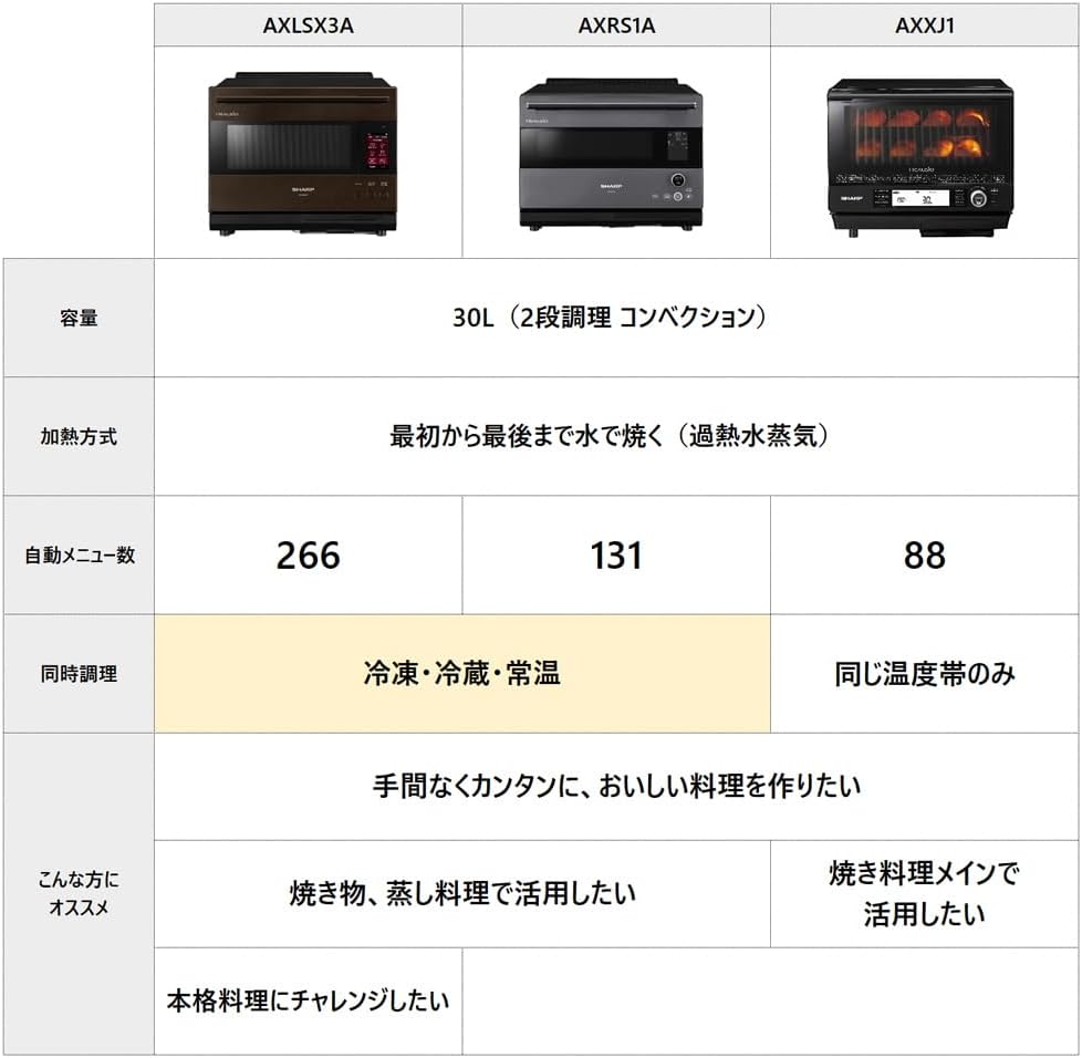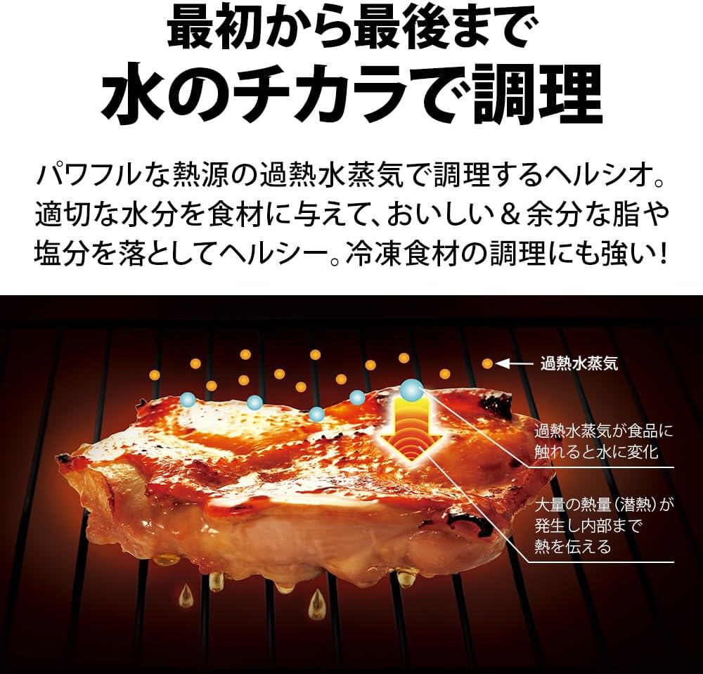 オーブン・グリル加熱方式:過熱水蒸気(ヘルシオエンジン)、2段熱風コンベクション