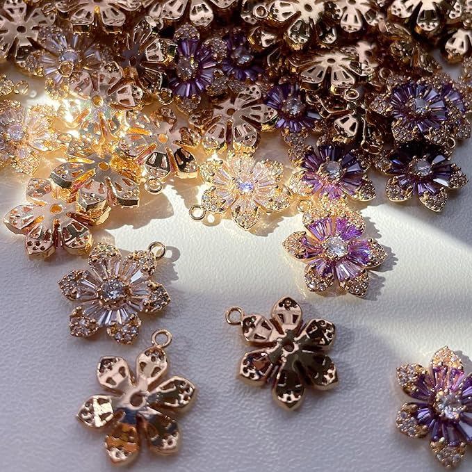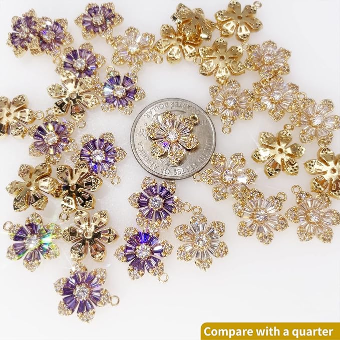 ZeaLian ジルコニア クリスタルフラワー 金メッキ