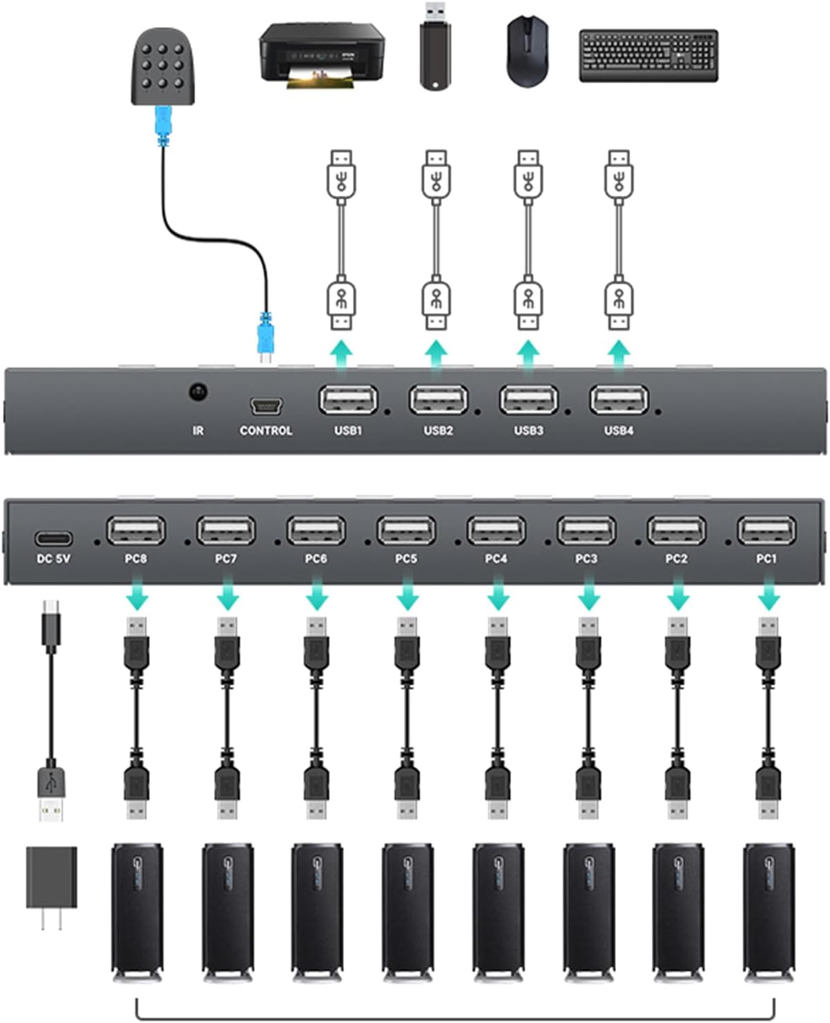 USB コンバータスプリッタ 8 PC 共有 USB 周辺機器プリンタオフィスホーム
