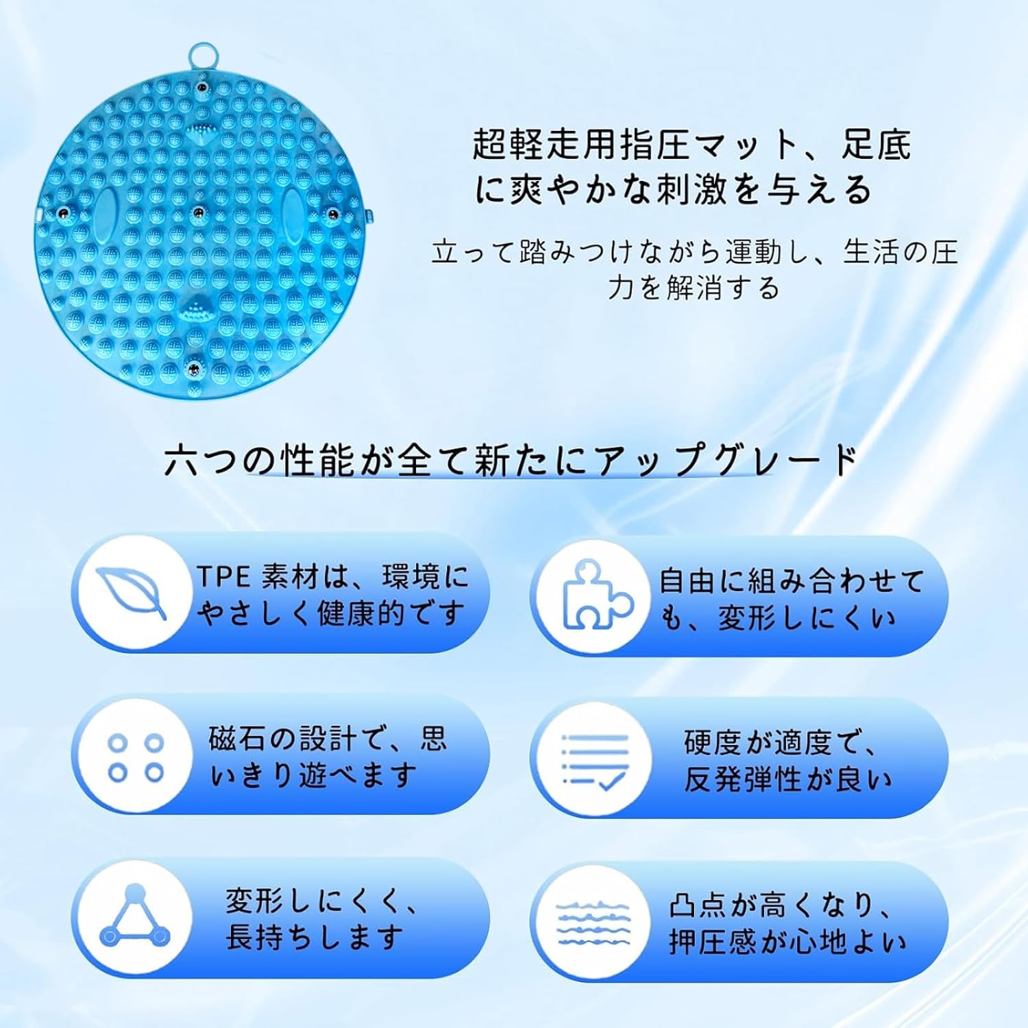 足ツボ足ツボ押し足つぼ マット滑り止め 耐久性あり コンパクト足つぼ マット指圧板運動足弓圧力パッド 折りたたみ 人間工学指圧パッド 家庭用 男女兼用 円形 一体型 (ブルー)