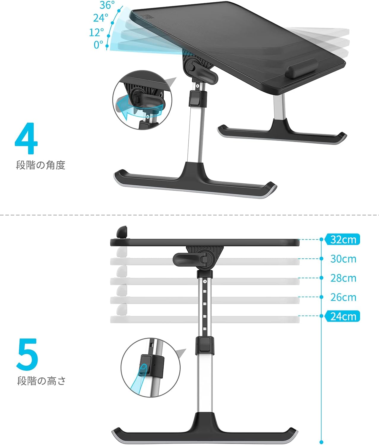 PCスタンド 折りたたみテーブル ローテーブル ミニテーブル ベッドテーブル 高さ・角度 調整 耐荷重40kg