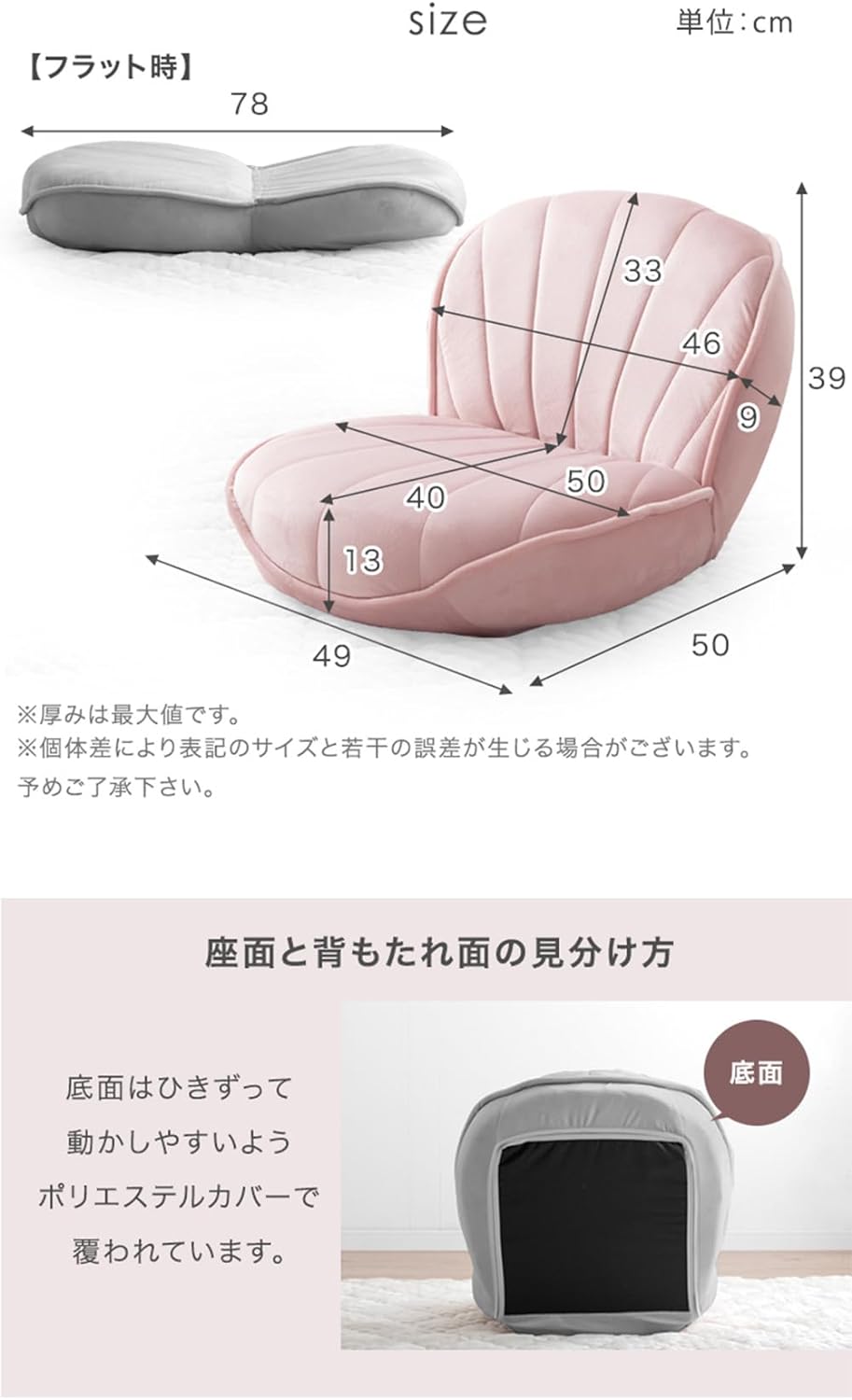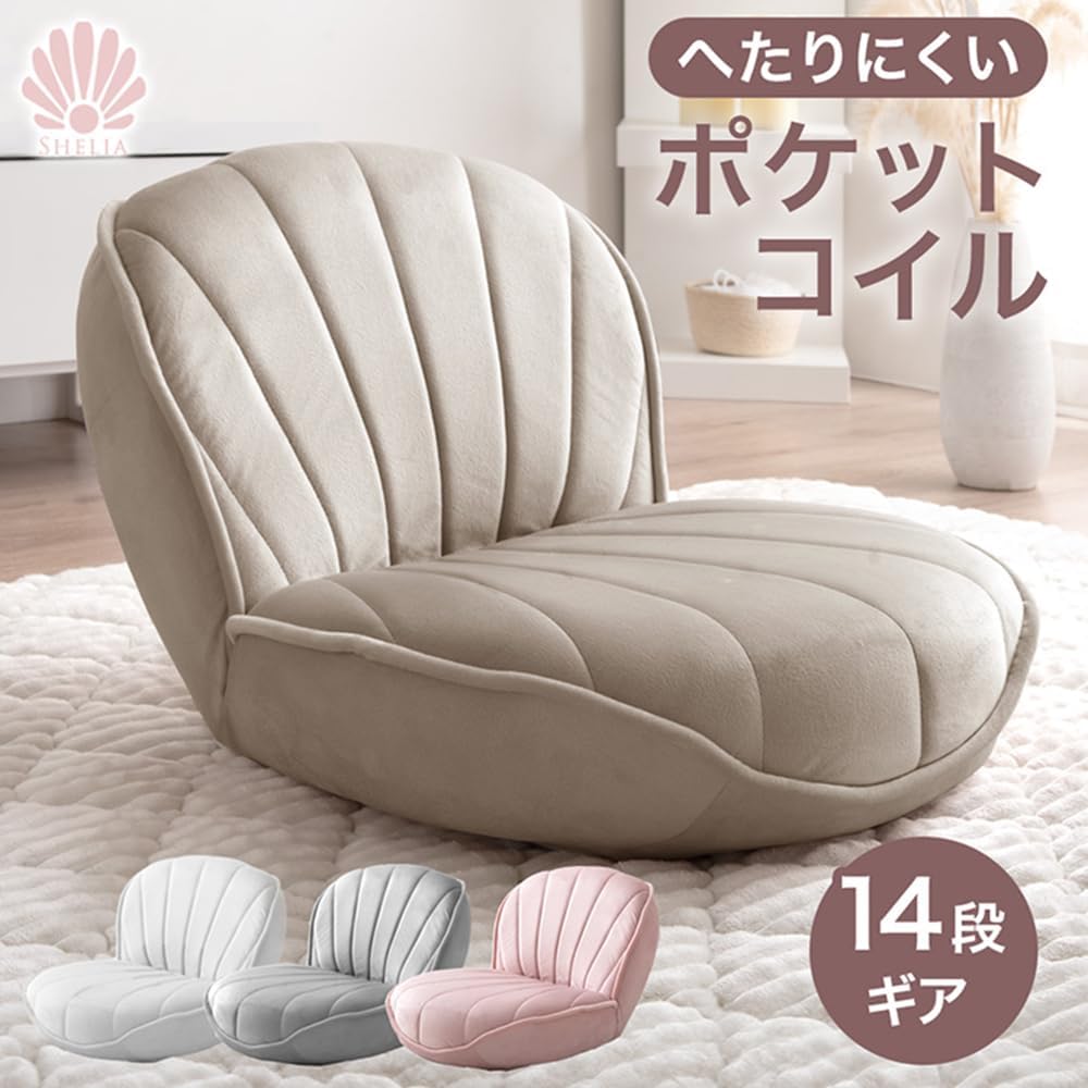 シェル型 14段階 リクライニング ポケットコイル リクライニング座椅子 フロアチェア コンパクト 持ち運び 極厚 15210185(92119)