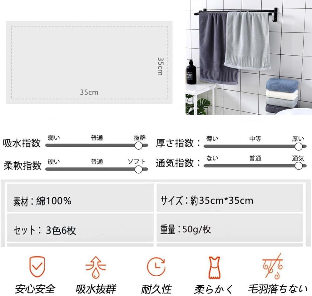 無地 タオル おしゃれ 綿100% 吸水速乾 35*35cm 抗菌防臭 家庭用、ホテル、業務用、スポーツなどにも最適 四季通用