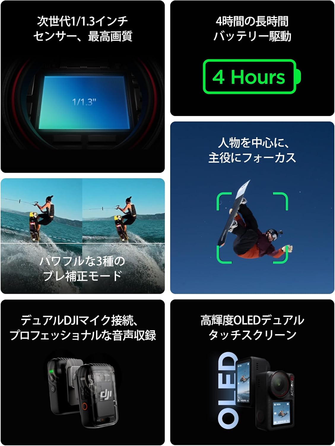 1/1.3インチセンサー付き 12時間の長時間駆動バッテリー(3個)