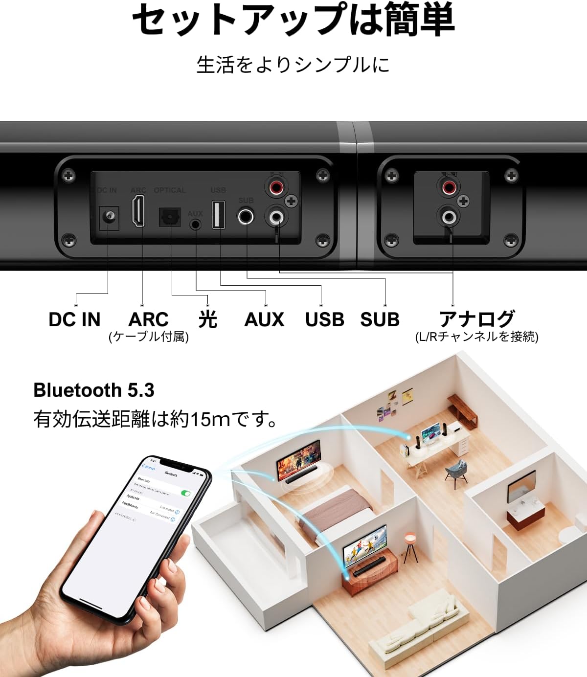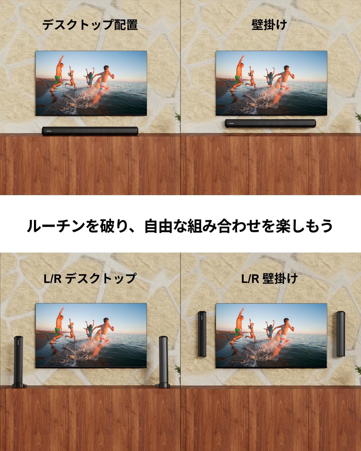 テレビ用 ホームシアター APP制御 ピーク電力100W PC用 2-in-1 分割式 Bluetooth5.3