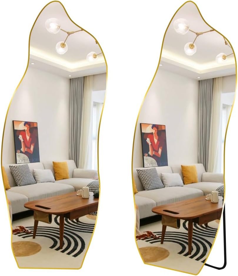 全身 姿見鏡 ウェーブミラー 160cm 幅50cm 韓国 モダン 玄関 かがみ 高さ ミラー 大型 大きい スタンド リビング 160×50 ゴールド