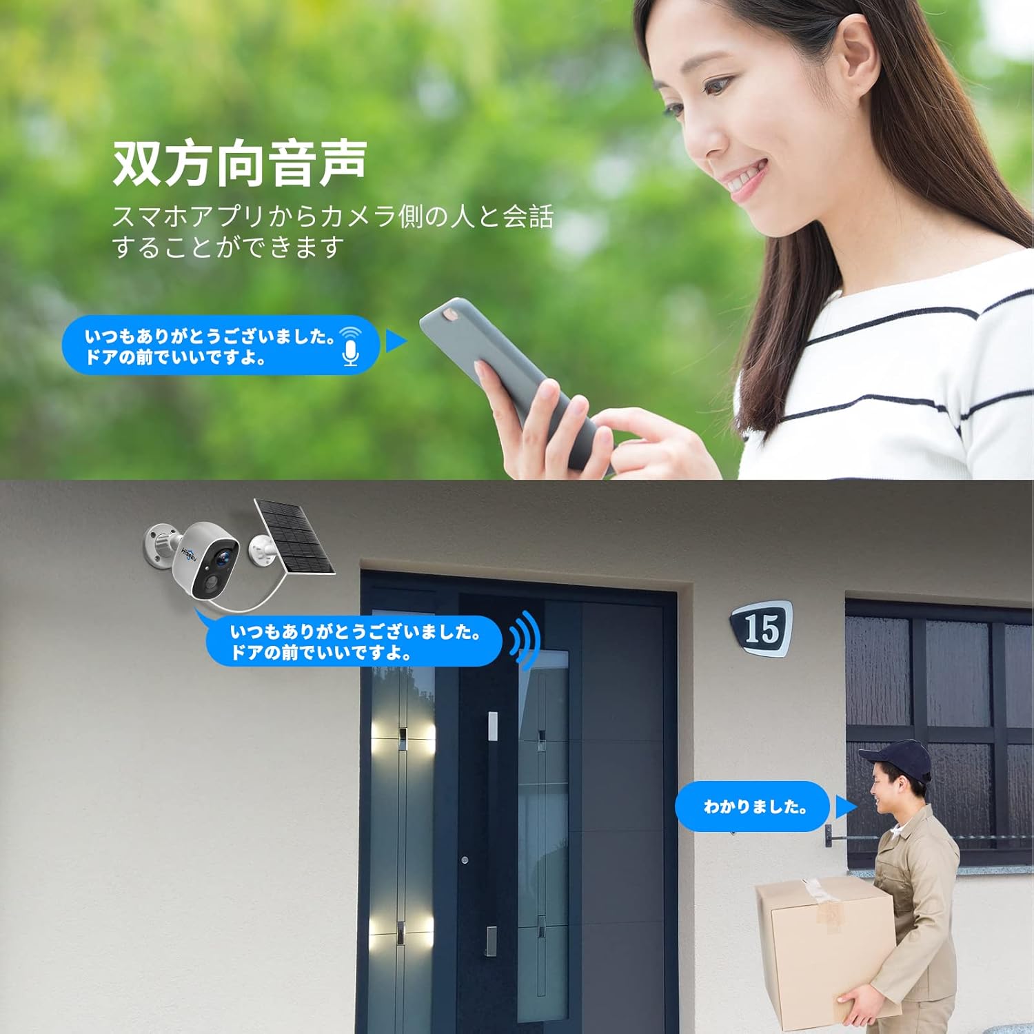 5200mAh容量・防犯カメラソーラー ワイヤレス防犯カメラ 配線不要 300万画素 双方向音声 屋外/屋内対応 USB充電/ソーラーパネル充電可能 IP65防水 アプリ警報 人感センサー 暗視 夜間カラー センサー発光 ネットワークカメラ 2.4GWiFi対応 遠隔監視 スマホ操作 iOS/Android