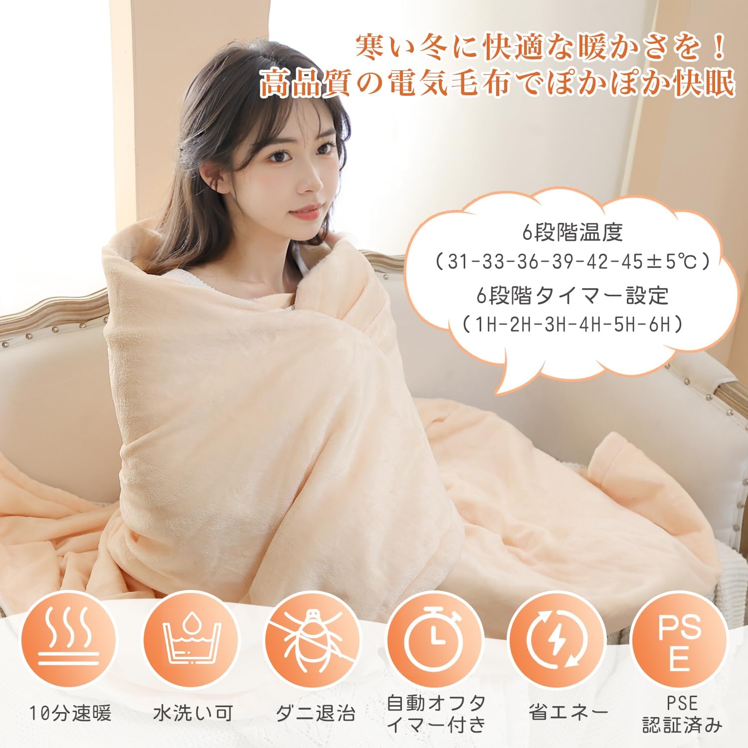 6段階温度調整 自動オフ機能 丸洗い可 タイマー機能 電気毛布 省エネ ダブルサイズ