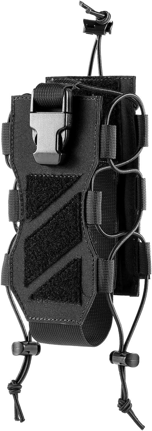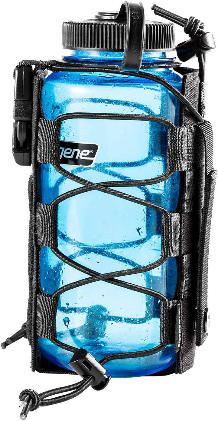 サイズ調節 折りたたみ式 MOLLE対応のボトルカバー ハンディタイプ水筒ホルダー キャンプ・登山・バイク・釣り用 (ブラック)