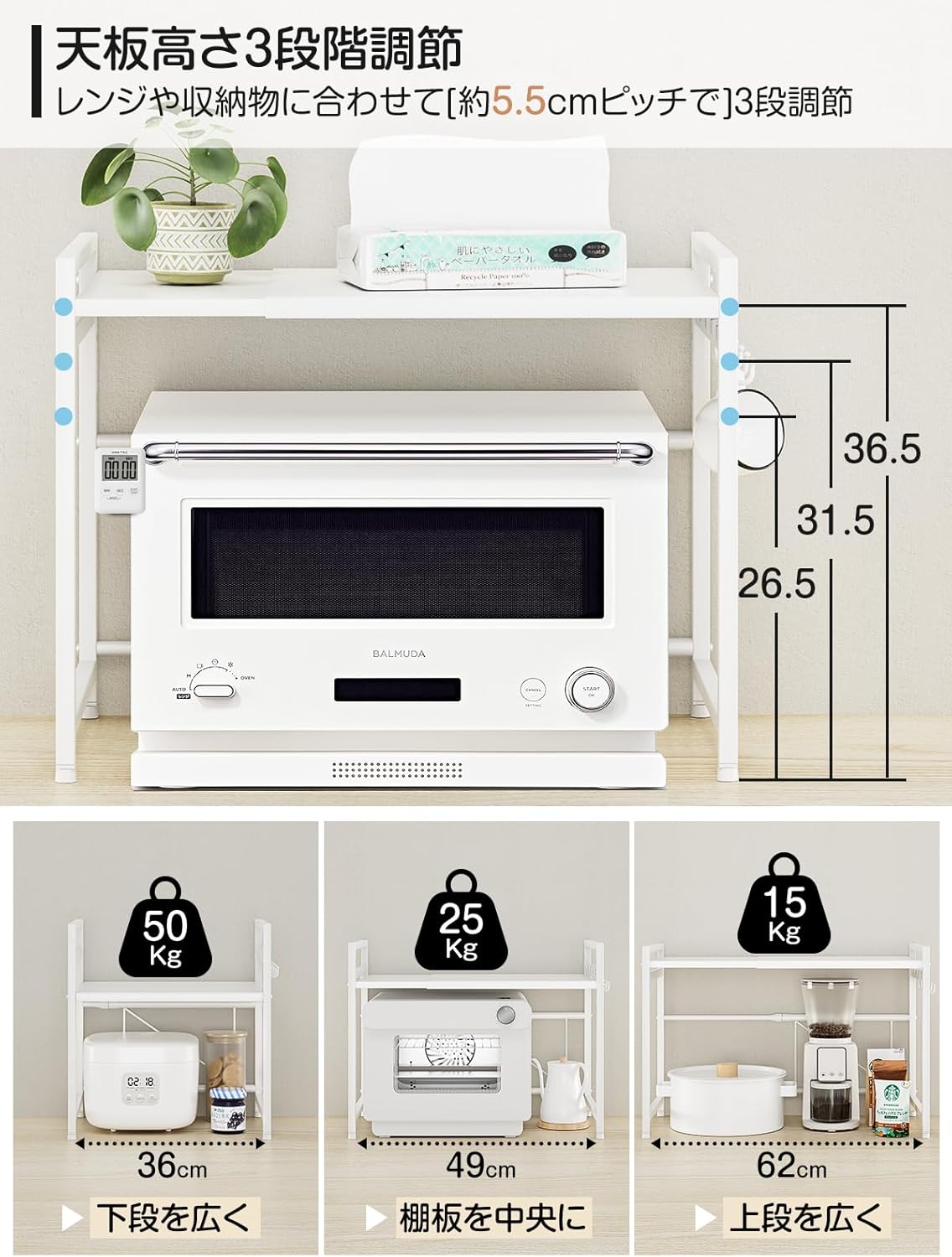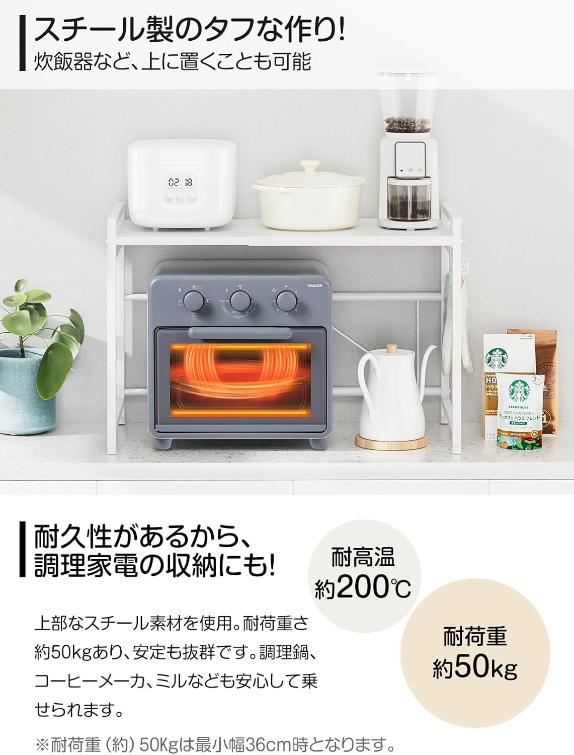 トースターラック レンジラック 伸縮式 幅(36~65cm) 棚板高さ調節可