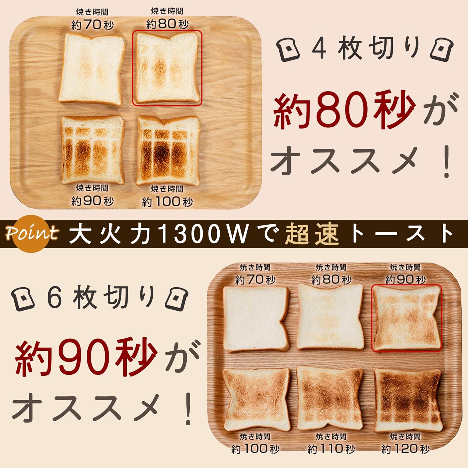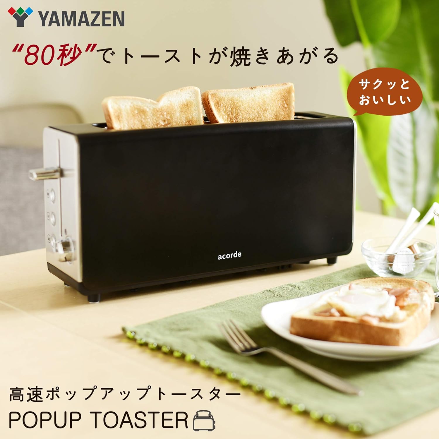 スリム ポップアップトースター 80秒高速トースター