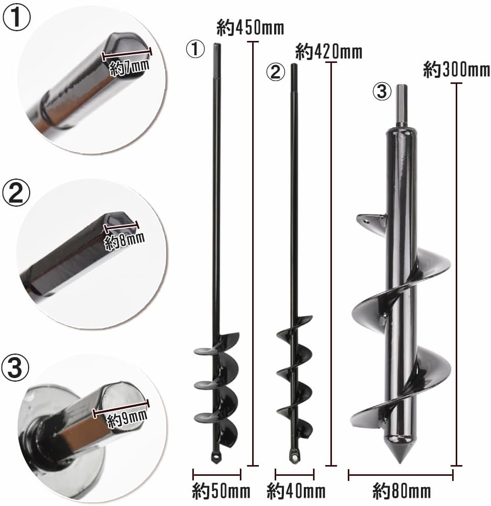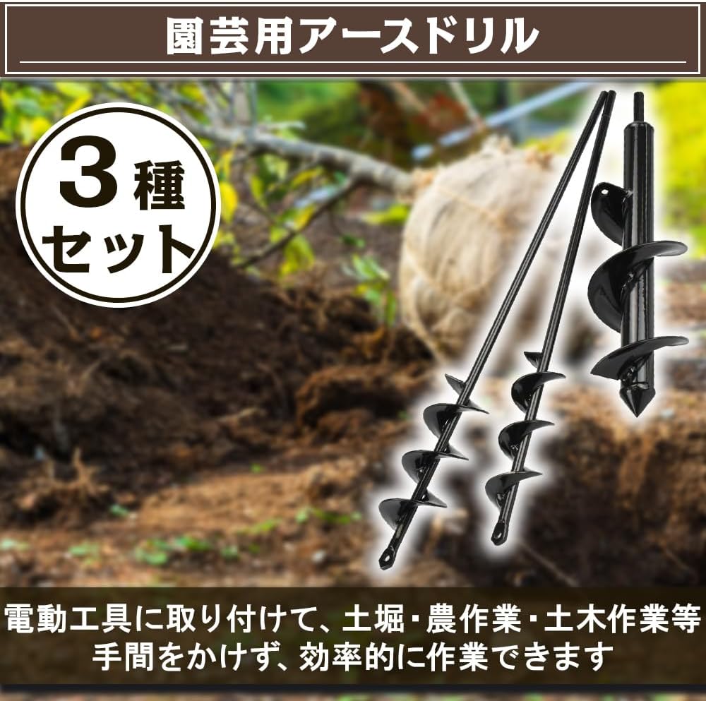 3サイズセット 穴あけ器 電動工具 穴掘り 苗床 支柱設置 DIY 農業