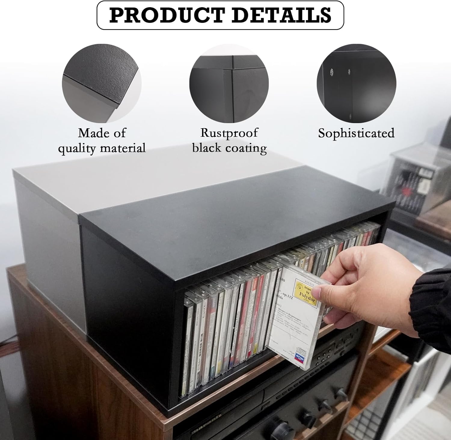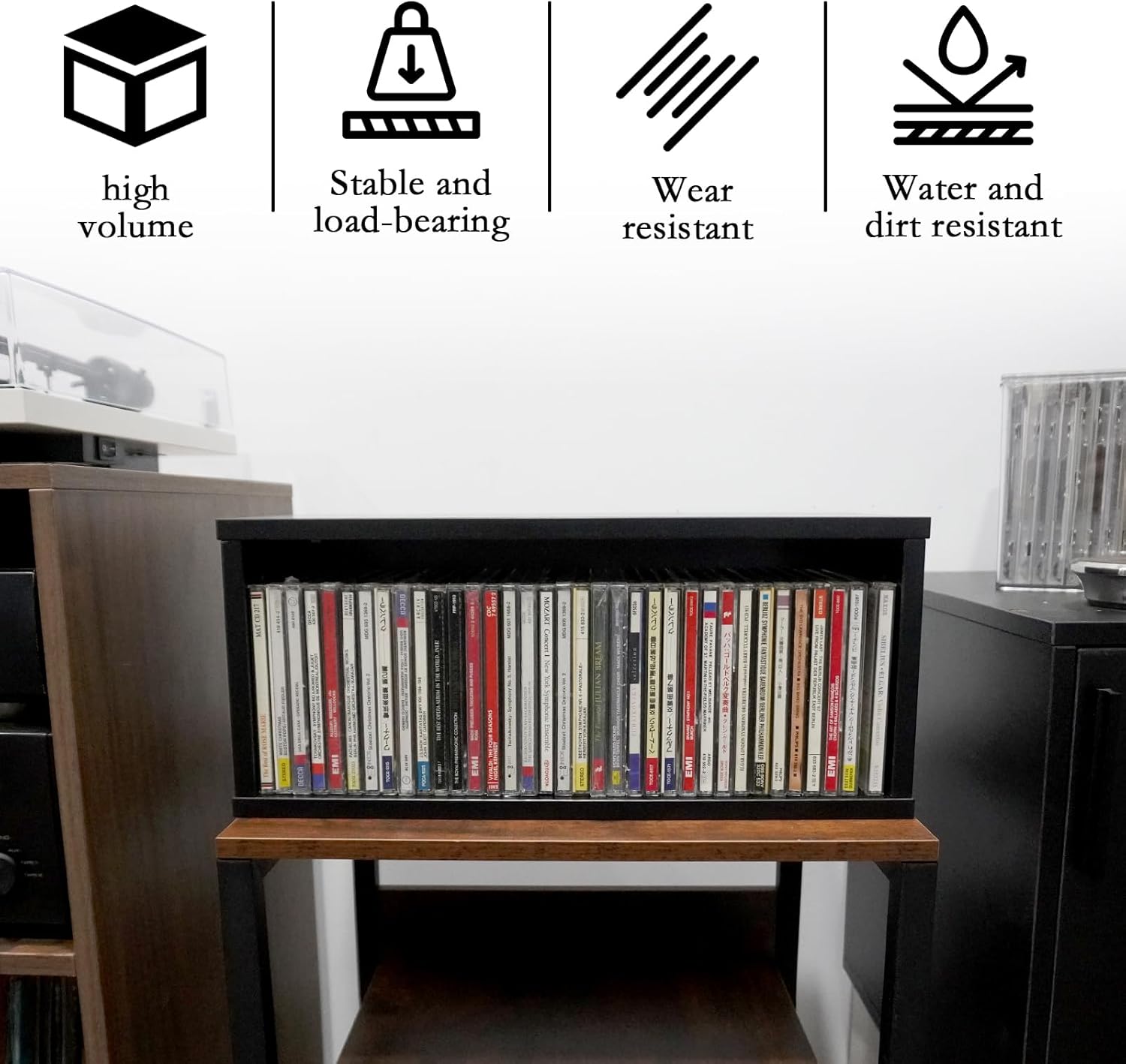CDケース CD/DVD収納 収納棚 大容量/多機能 幅39.8×奥行16.2×高さ17.2cm 収納管理用 卓上 小物収納 (黒)