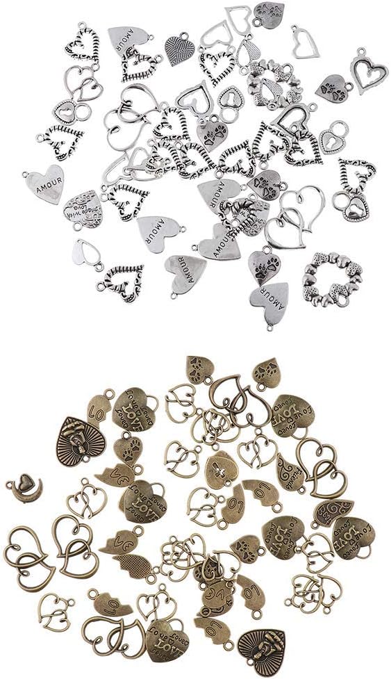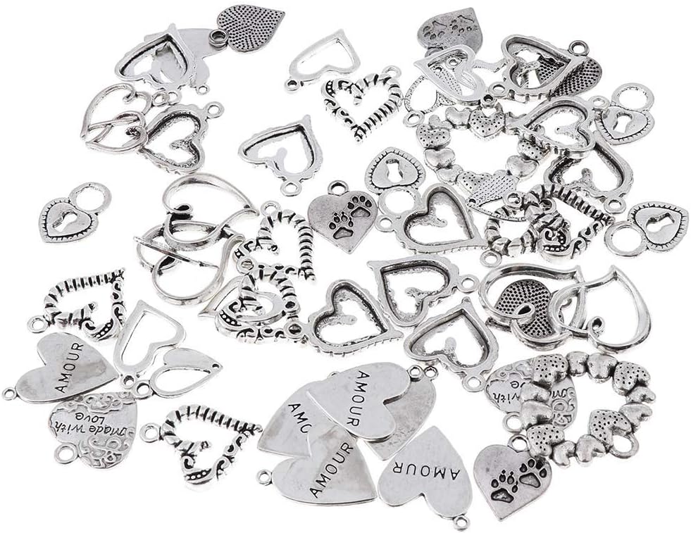 アクセサリーを作る50個のハートチャームジュエリー所見-アンティークシルバー