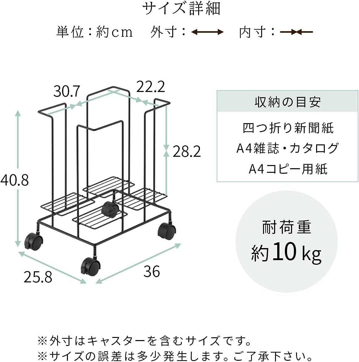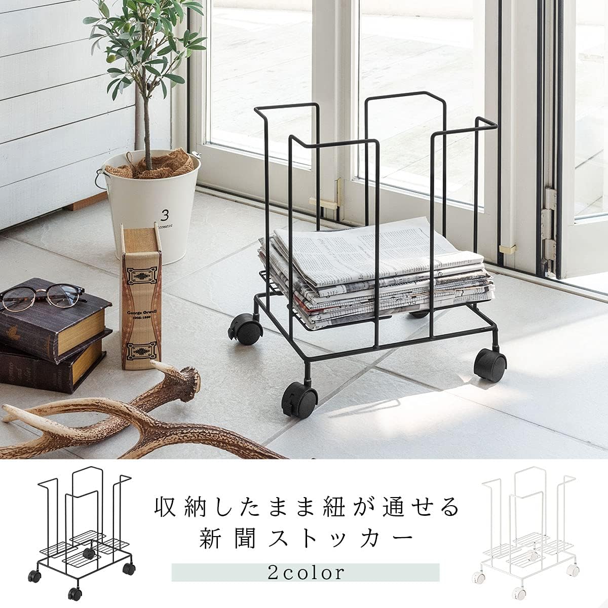 キャスター付 A4 スチール 雑誌 収納 バスケット シンプル リサイクル ブラック