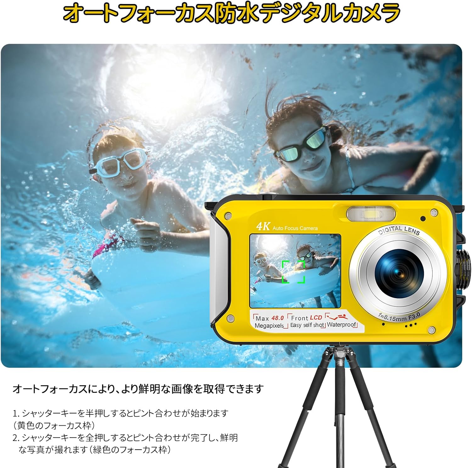 防水カメラ4K 防水デジカメ 3M防水