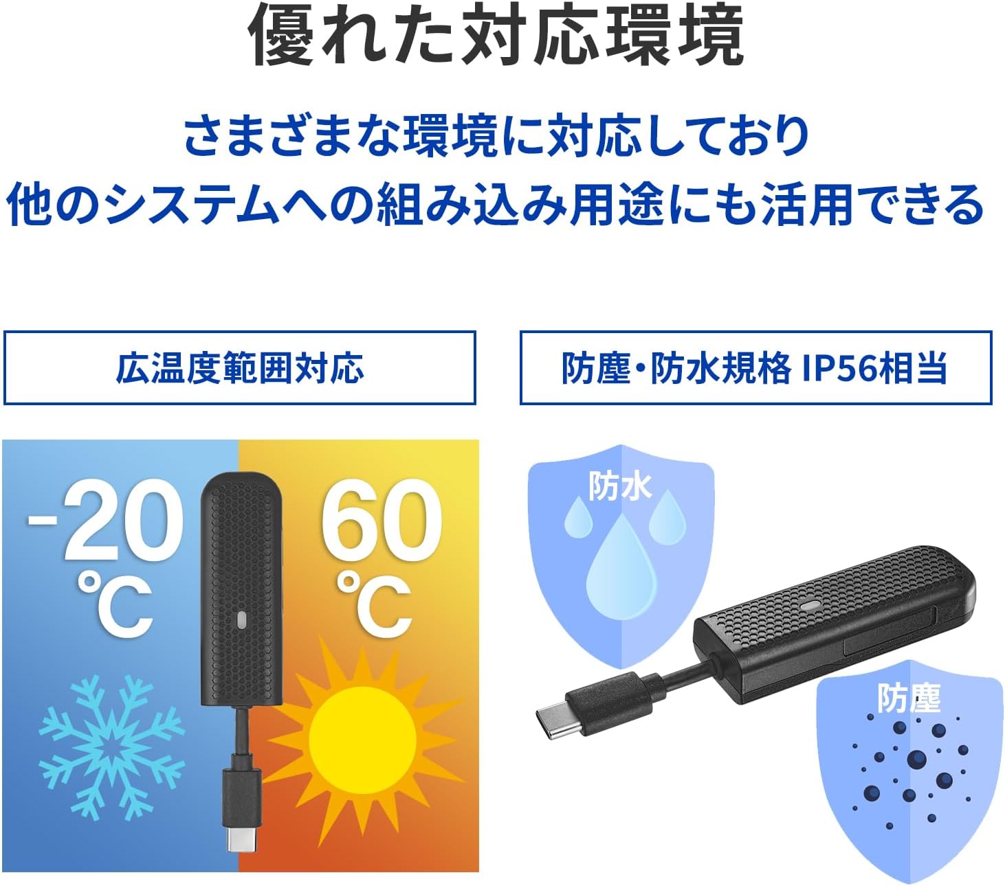 モバイルデータ通信 防水防塵 広温度範囲対応 (USB Type-C/USB-A/ノートPC/タブレット)