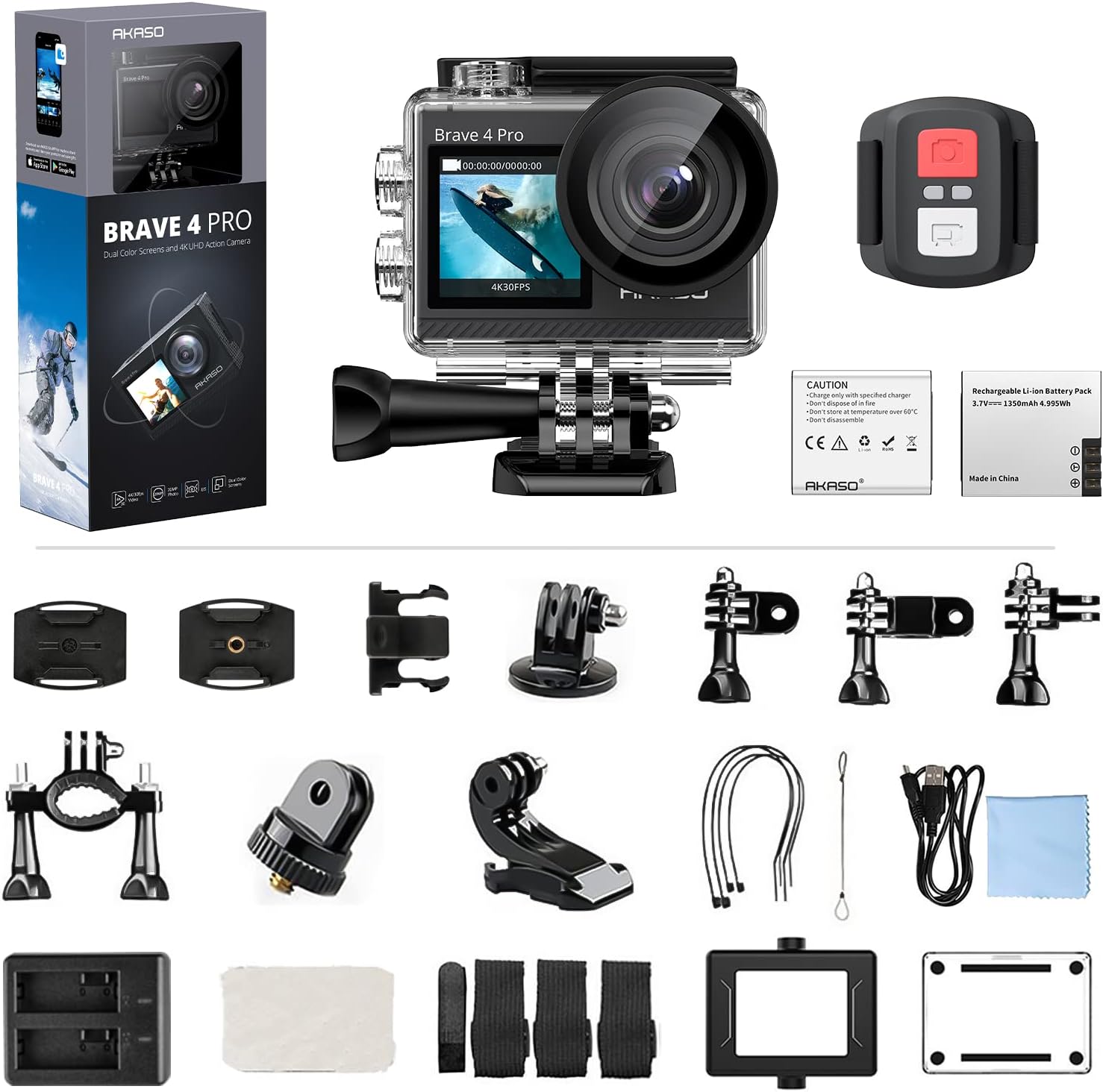 AKASO アクションカメラ 4K 20MP解像度 タッチパネル式 デュアルカラースクリーン 40M防水 水中カメラ 手ぶれ補正 外部マイク対応 WiFi搭載 HDMI出力 5倍ズーム リモコン付き