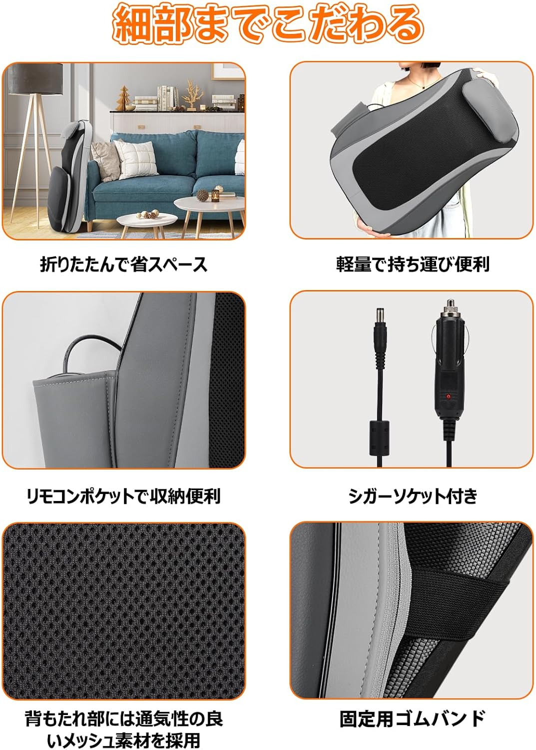マッサージ機 マッサージチェア マッサージ器具 シートマッサージャー 腰と背中マッサージ プレゼント 3段階振動 ヒーター付き 肩・腰・背中・低背・お尻 軽量 折りたたむ 収納しやすい コンパクト 誕生日 家庭用 職場用 (Black)