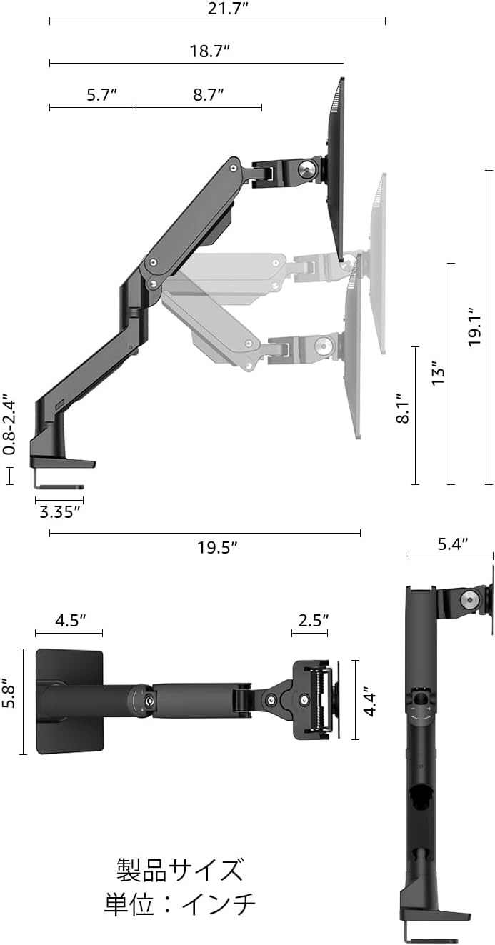 BEWISER クレーン 大型1画面ディスプレイロボットアーム PC0710