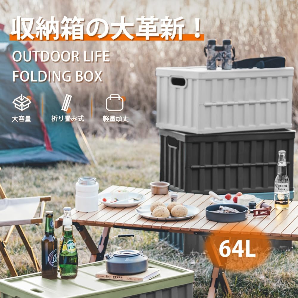 折り畳みコンテナ 64L*3個 大型 収納ボックス 蓋付き「7秒で組立簡単」収納ケース 積み重ね 折りたたみカゴ 大容量 取っ手付き 多機能 屋外収納 家庭用 衣類 書類収納 車用 コンテナ ボックス キャンプ オリコン トラスコ メッシュ 折り畳みコンテナ 箱 横59.5*奥行39*高さ31.5cm(ブラック*3個セット)
