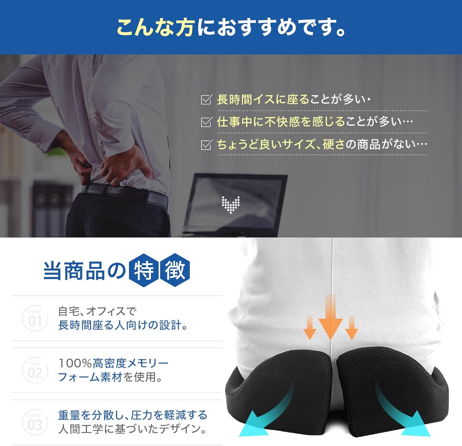 [日本デザイン プロ仕様] 低反発 椅子用サポート