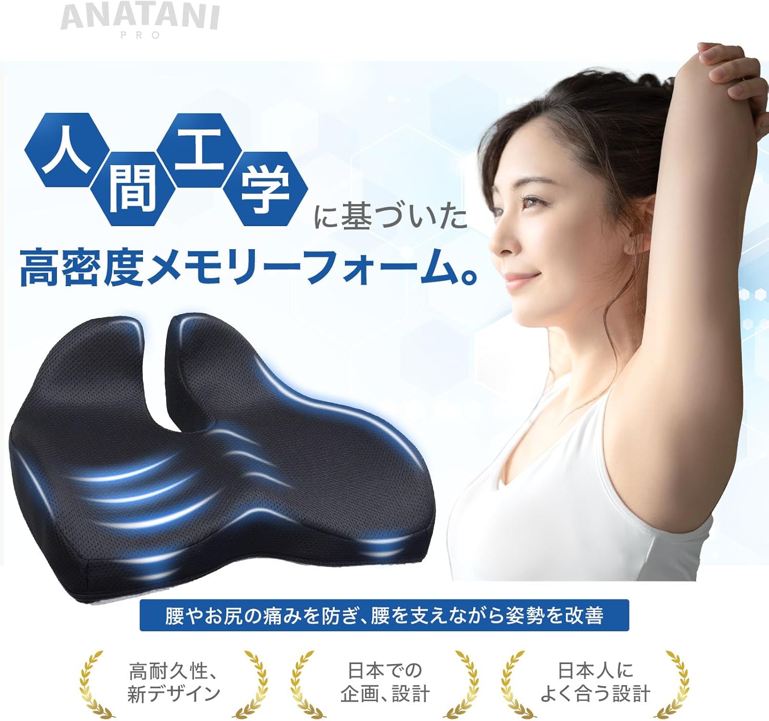 腰痛対策 坐骨神経痛ケア 姿勢矯正 オフィスや自宅に最適 滑り止め&通気性 ブラック ANATANI PRO
