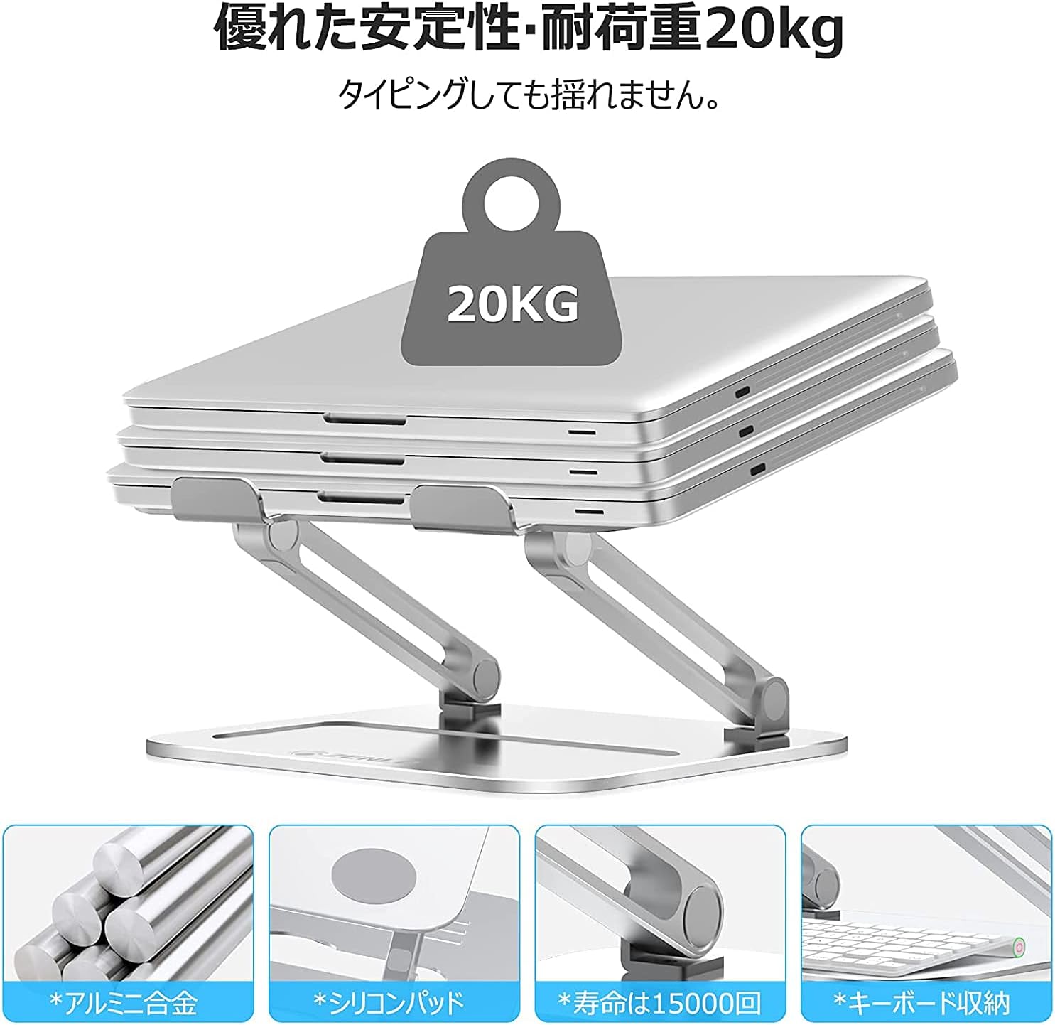 PCスタンド 折り畳み式 人間工学 無段階調整 パソコン台 アルミ合金製 優れる安定性 放熱性