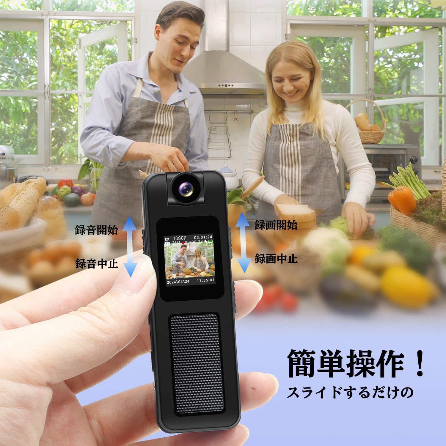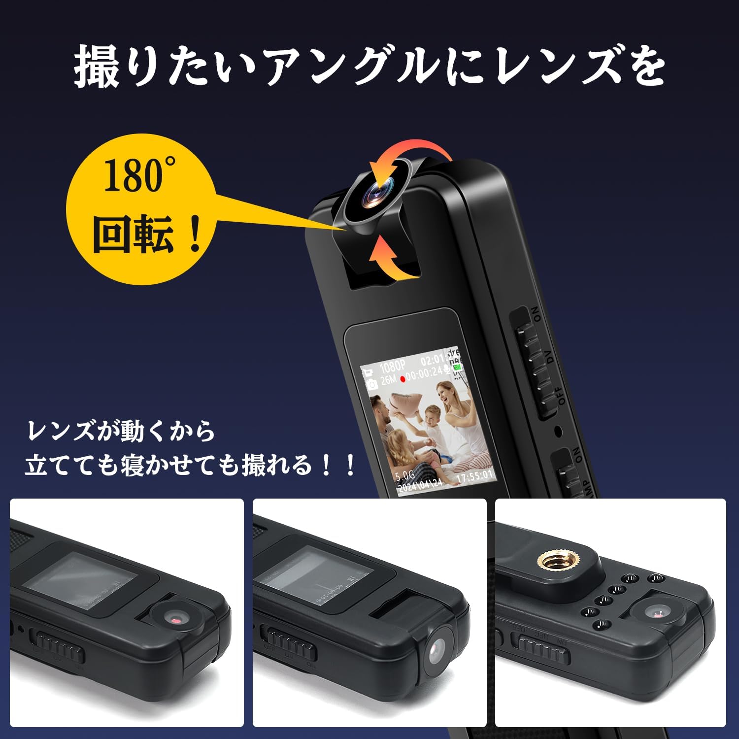 1.2インチモニター付き 1080P画質 180度回転レンズ