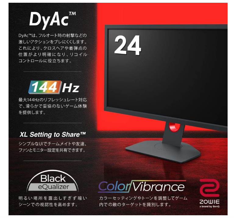 ベンキュージャパン BenQ ZOWIE XL2411K ゲーミングモニター (24インチ/Full HD/TN/144Hz/1ms/DyAc/小さめ台座/OSDメニュー/指一本で高さ調整)
