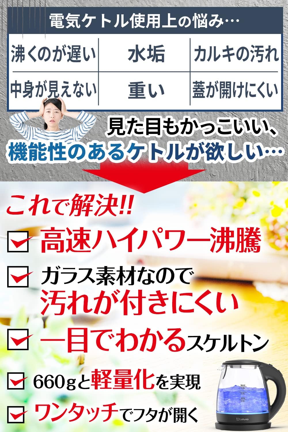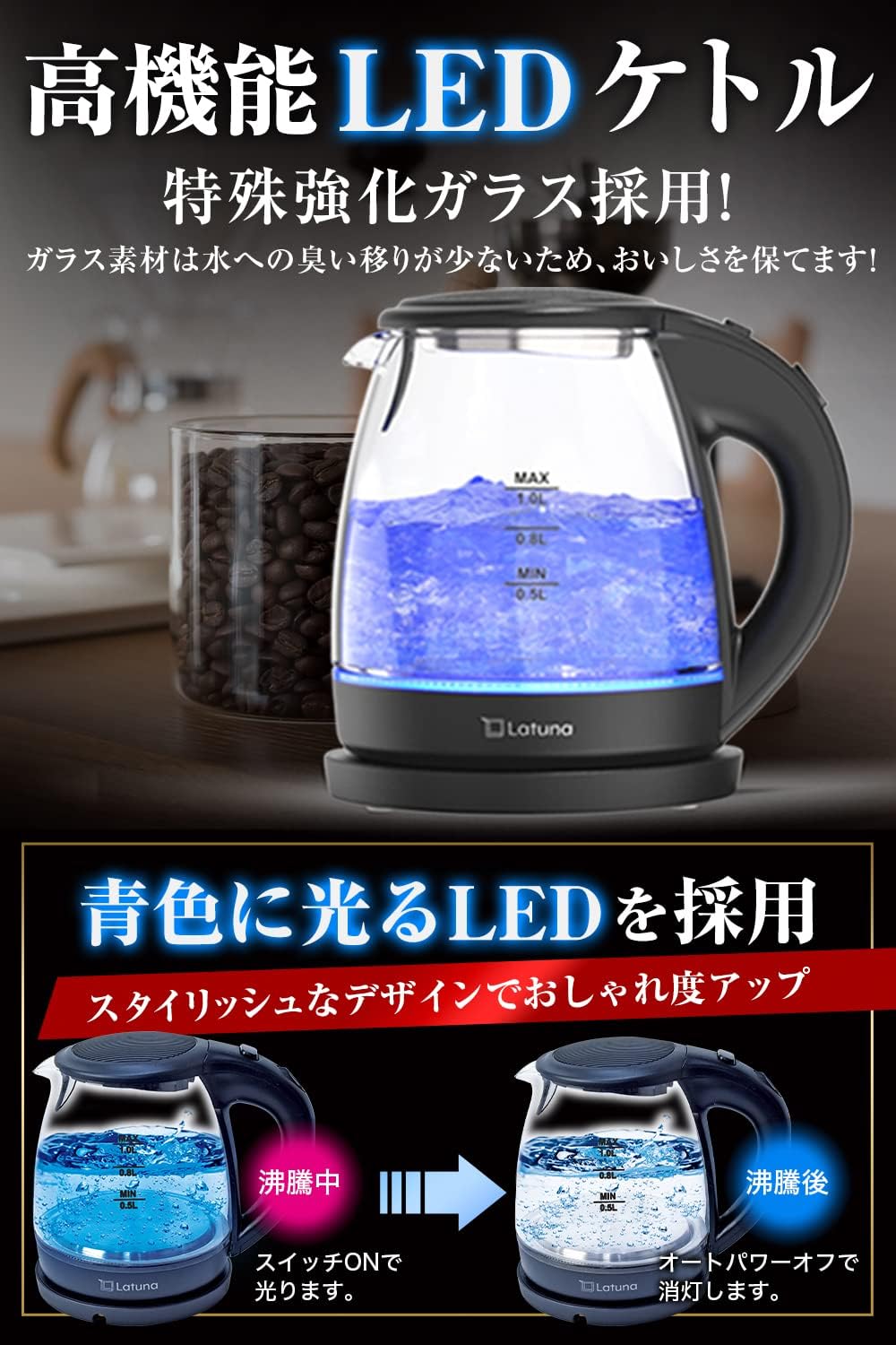 湯沸かしケトル LEDライト付