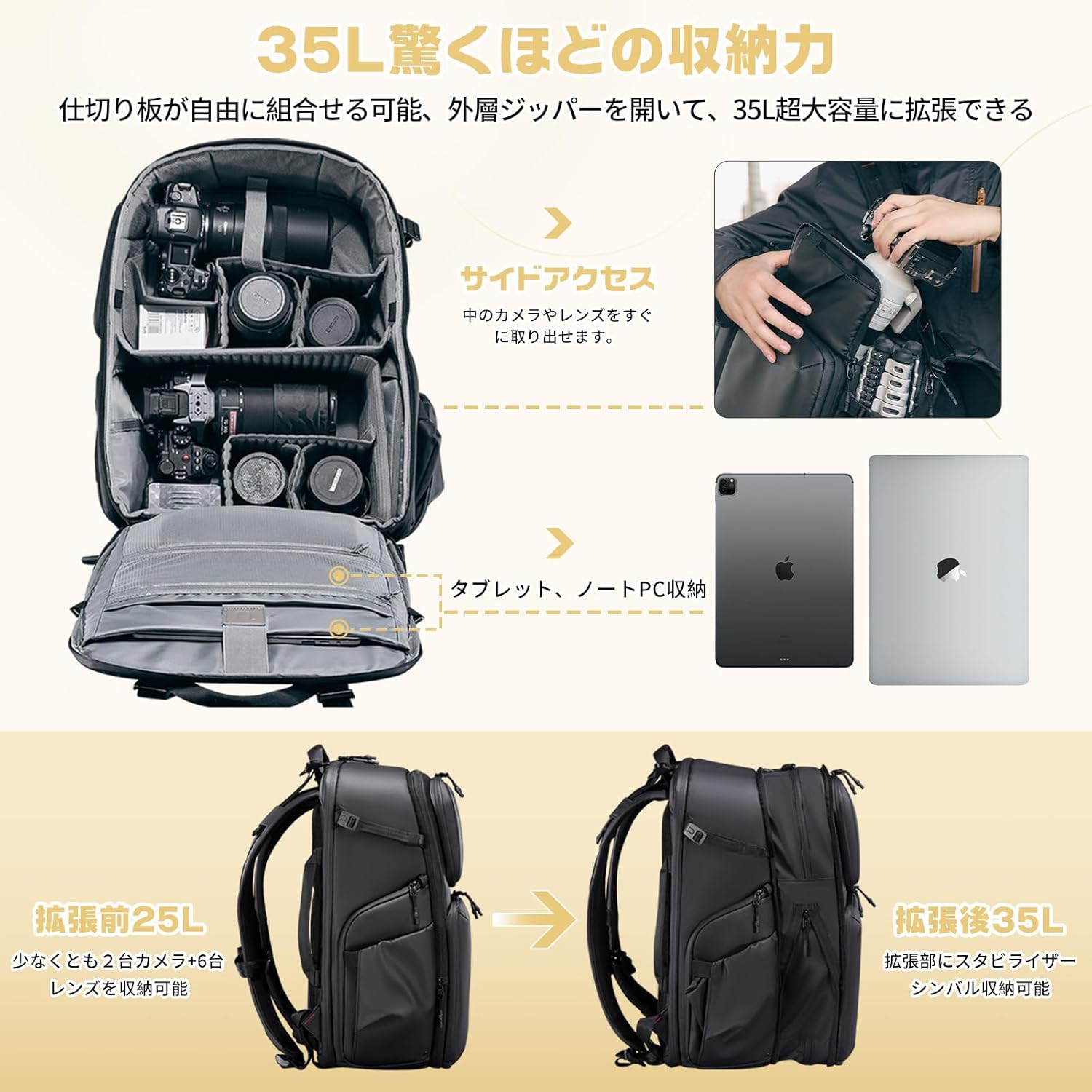 一眼レフカメラ 三脚 小物収納 仕切り調整可能 撥水加工 盗難防止