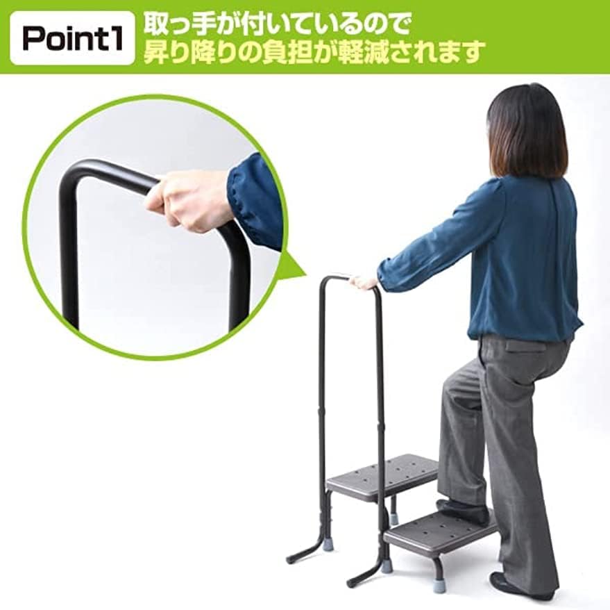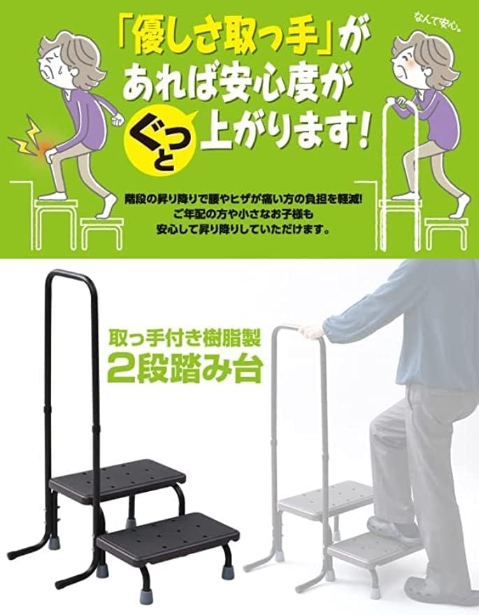 縁側、ベランダ等の段差を解消できるステップに取っ手が付いた取っ手付き2段踏み台