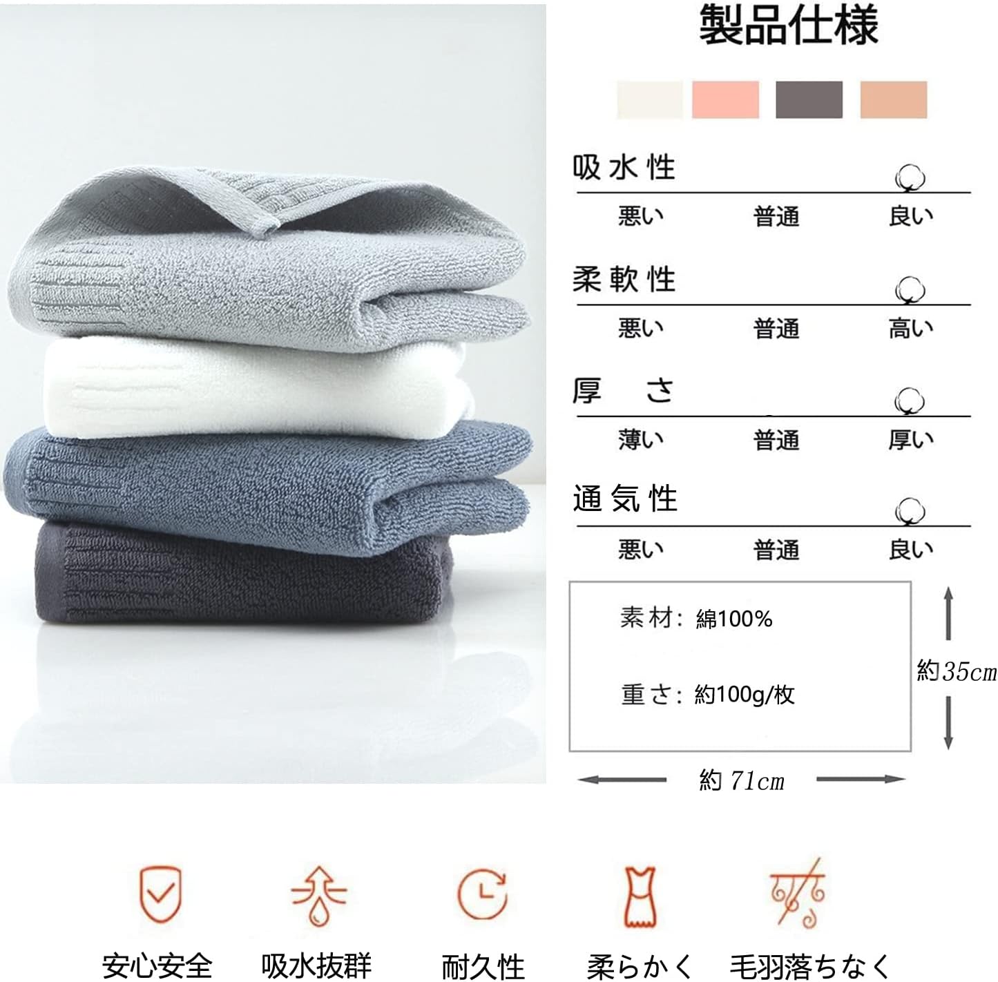 タオル 約71x35cm 重さ約100g/枚 タオル 綿100% 人気 ホテル仕様 タオル ふんわり 柔らかな肌触り 吸水 速乾 家庭、ホテル、スポーツなどに最適 (3色)
