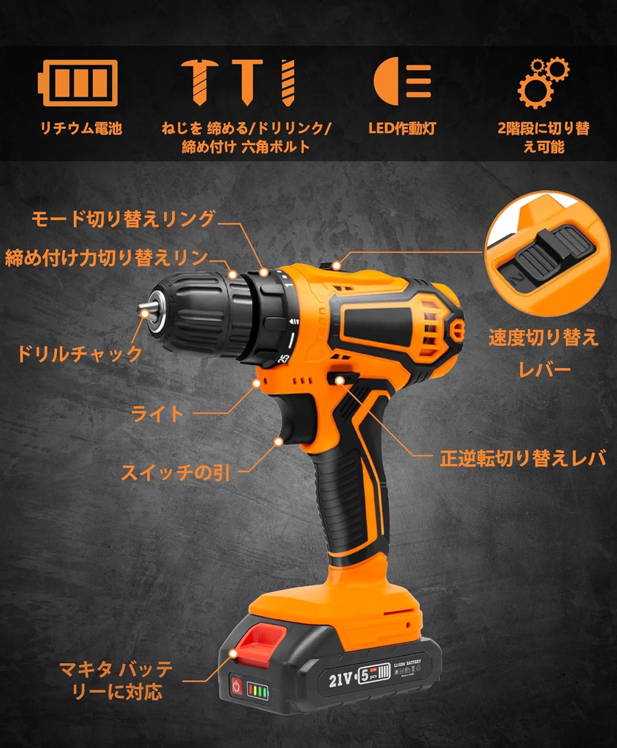電動ドライバー ドリル 21v 1500mAh DY0116