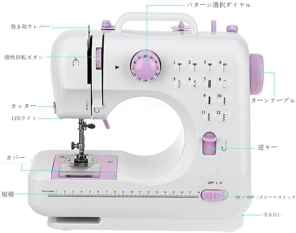 電動 ポータブルミシン12線多機能