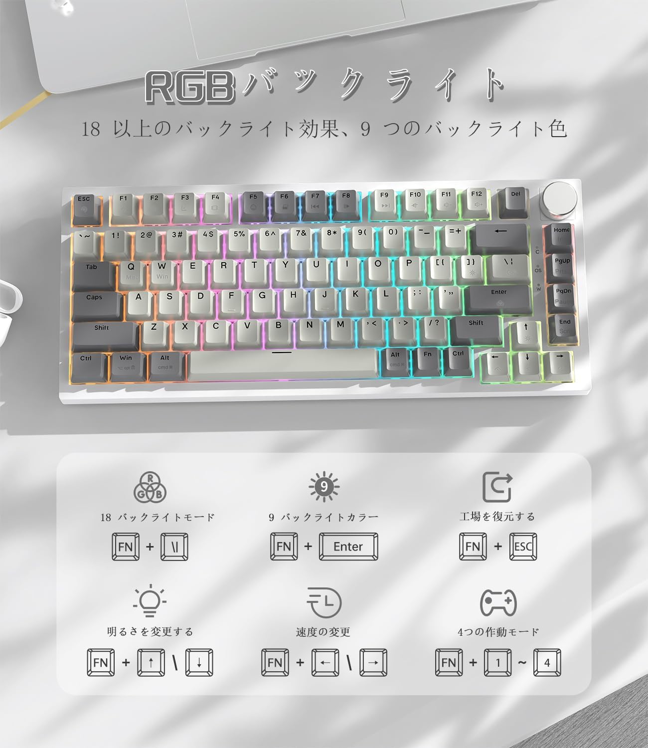 ゲーミングキーボード ストローク調整可 pbt キーキャップ TKL ゲーミング US 配列 82キーアンチゴースト ガスケット構造