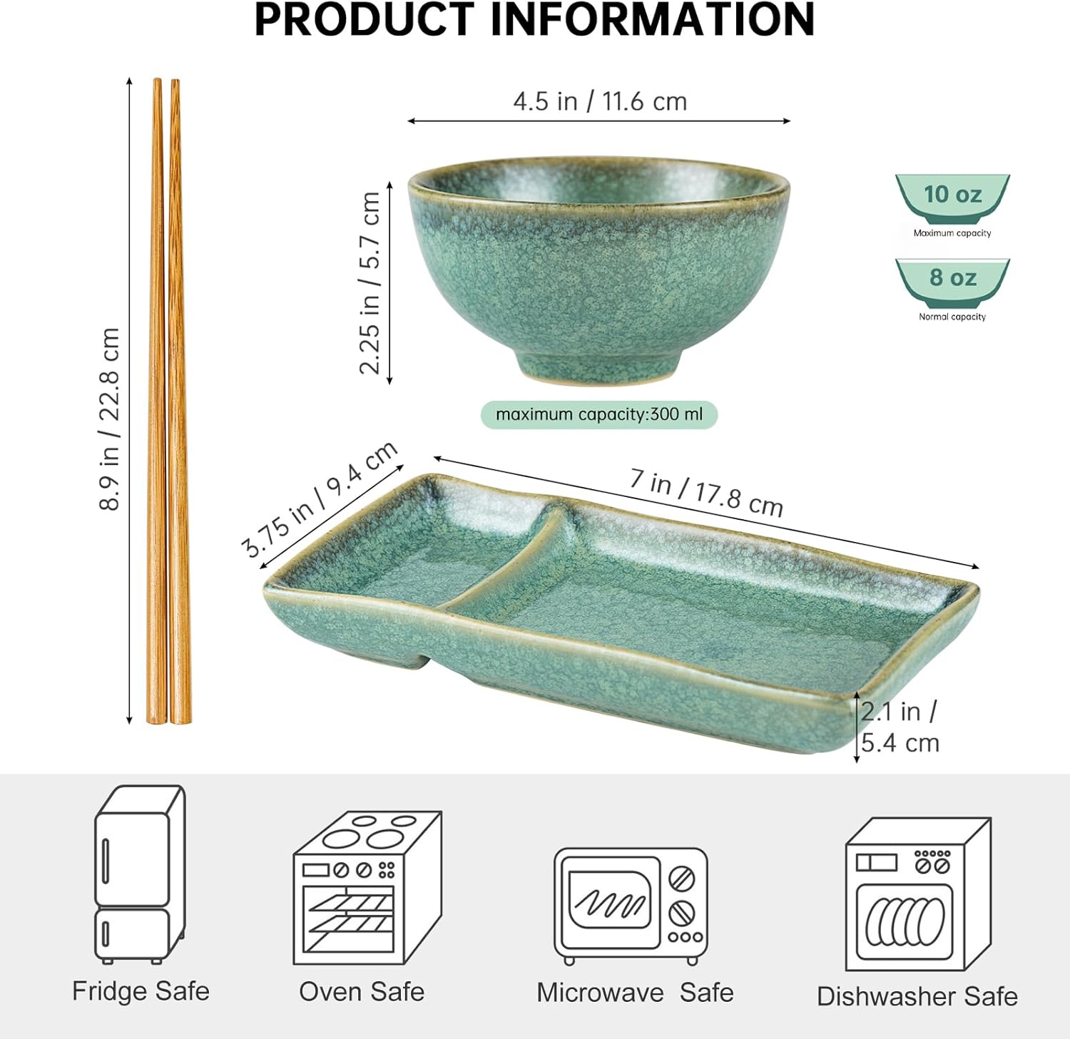 長角皿 焼皿 長い 皿、200ml スープ・ご飯碗、箸付き、食洗機・電子レンジ対応 (ライトグリーン 緑)