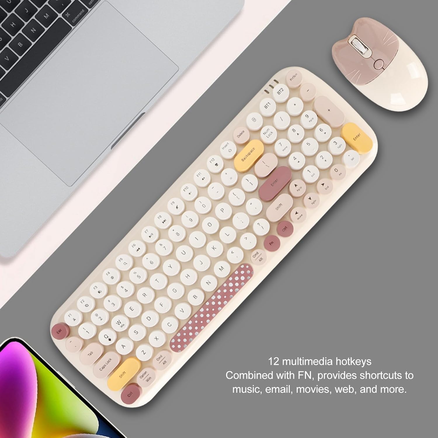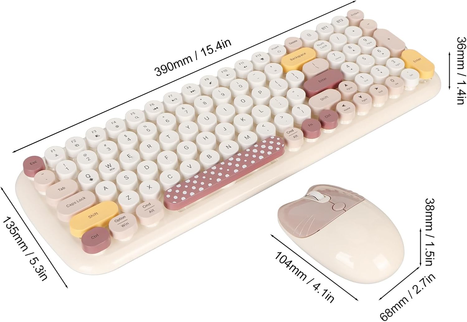 カラフルなフルサイズタイプライターキーボードかわいい光学式マウス2.4GHz