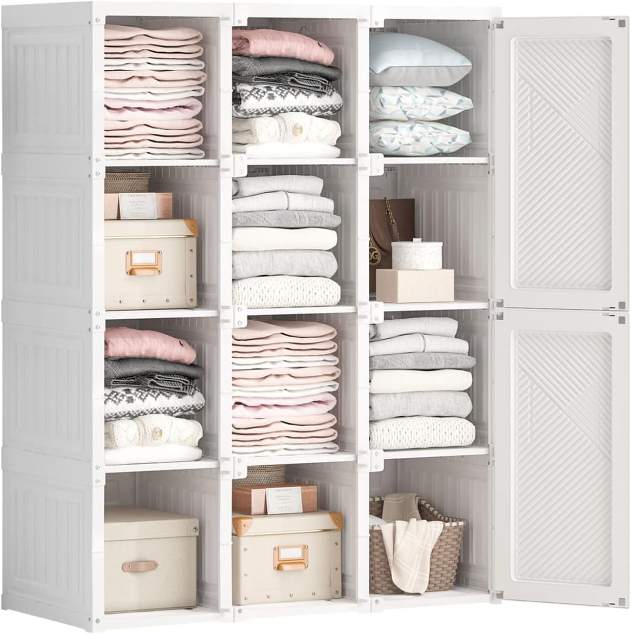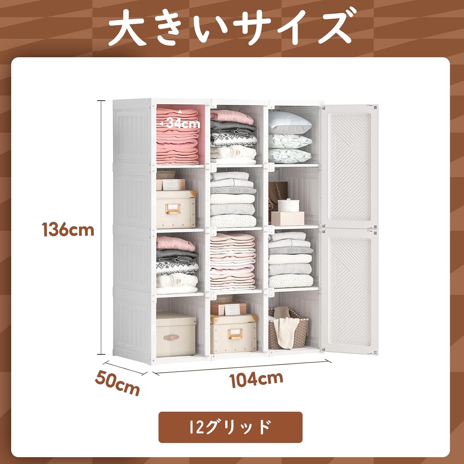 シンプル収納棚 衣類ケース 一体折り畳み式 洋服収納ラック 扉付き