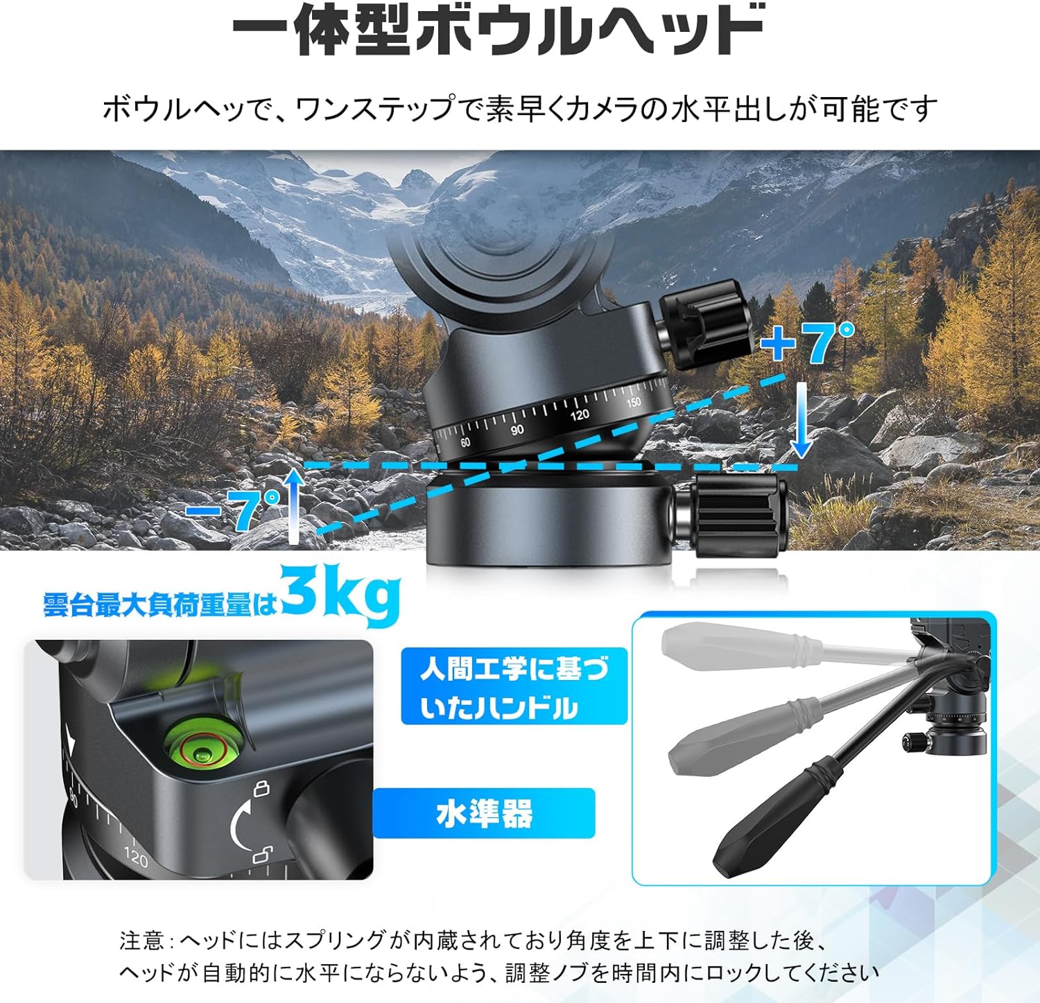 フルード雲台 パノラマ撮影雲台 自由ボール雲台 耐荷重3キロ 360°回転可能