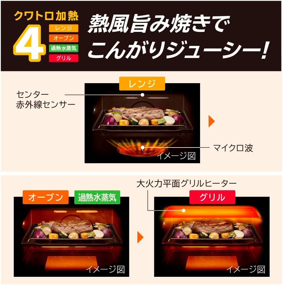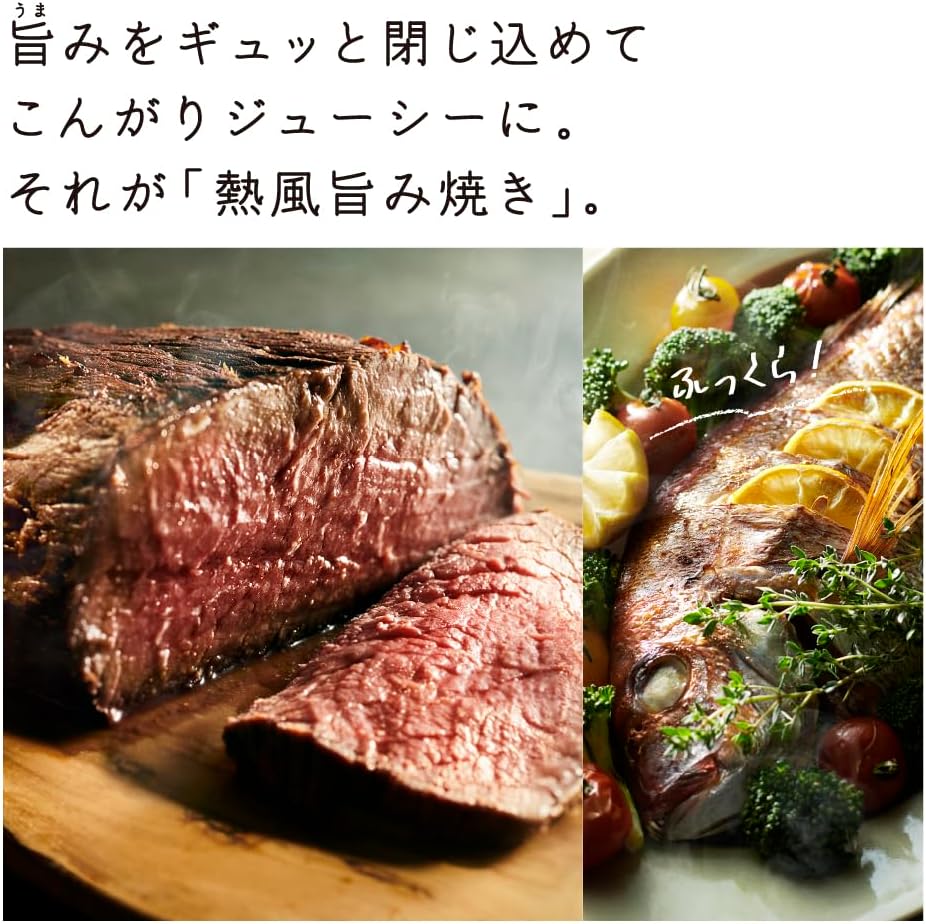日立独自のセラミックプレートと熱風で食材を包み込み一気に加熱。旨みを閉じ込めて、肉も魚もおいしく焼き上げる。