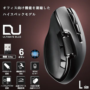 エレコム2.4GHzワイヤレス Ultimate Blueマウス ハードウェアマクロ搭載 サイドホイール 高速スクロール 6ボタン Lサイズ(ブラック)DUALシリーズM-DWL01DBBK