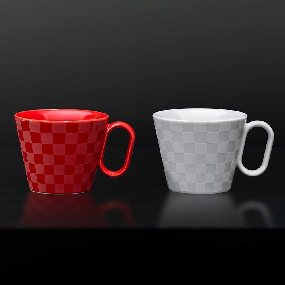 有田焼 レギュラー 市松 ペアセット マグカップ 240ml (レッド・ホワイト (艶))