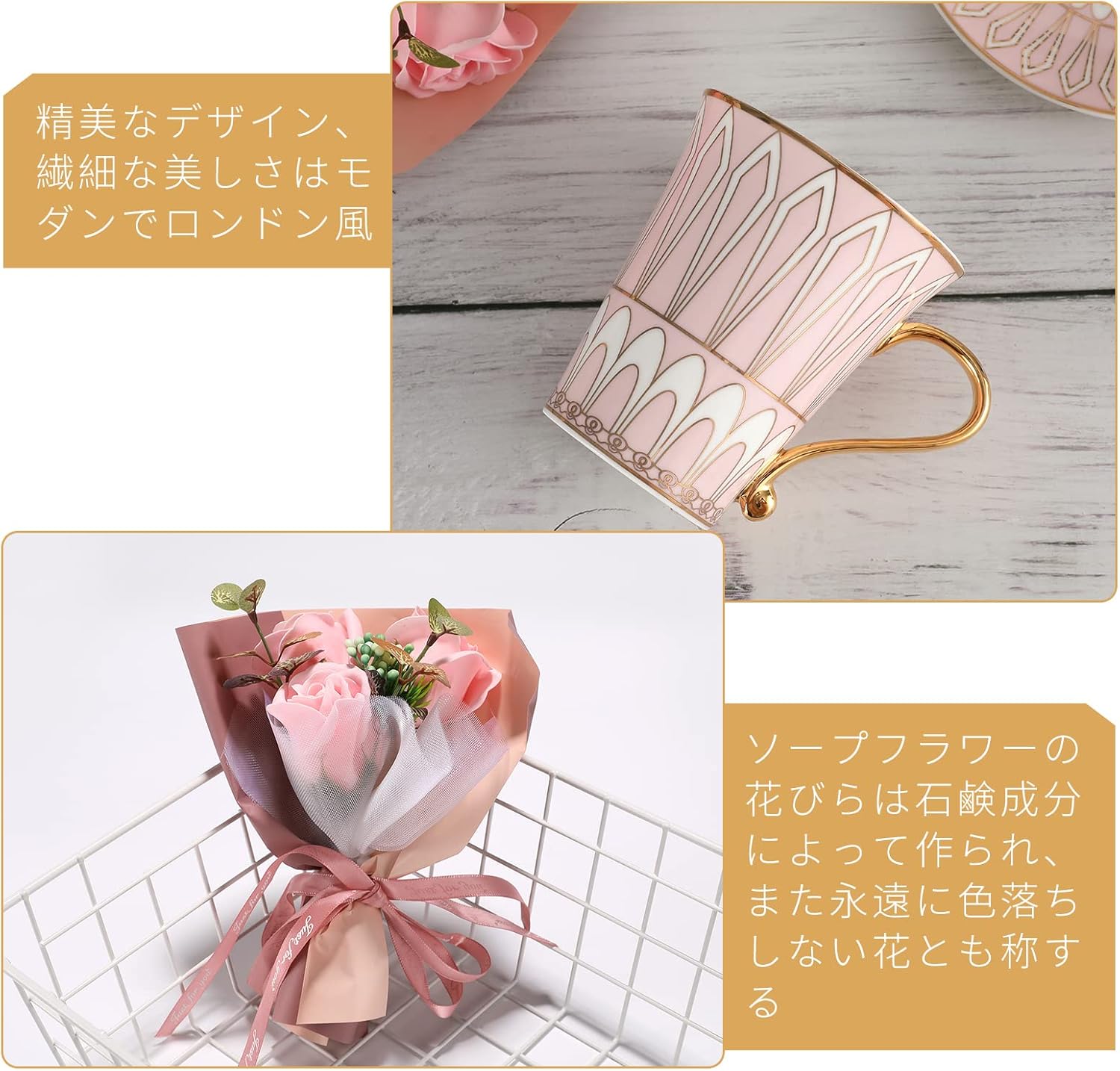 花束コーヒーカップセットセット 母の日 誕生日プレゼント 女性 母親 姉 友達 結婚記念日 プレゼント妻 敬老の日 おしゃれ 退職祝いマグカップ 彼女 昇進祝い 送別会 結婚祝いプレゼント(ピンク)マグカップ蓋付き約300ml 保温 保冷 耐熱