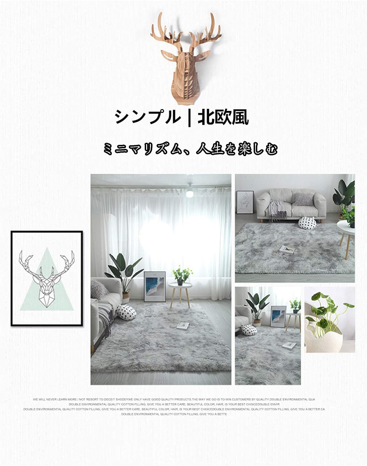 防ダニ センターカーペット かわいい 抗菌 消臭 シャギーラグ 絨毯